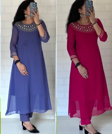BLOOMING GEORGETTE DOUBLE MIRROR HANDWORK KURTI WITH GOTA PATTI DESIGNER SLEEVES