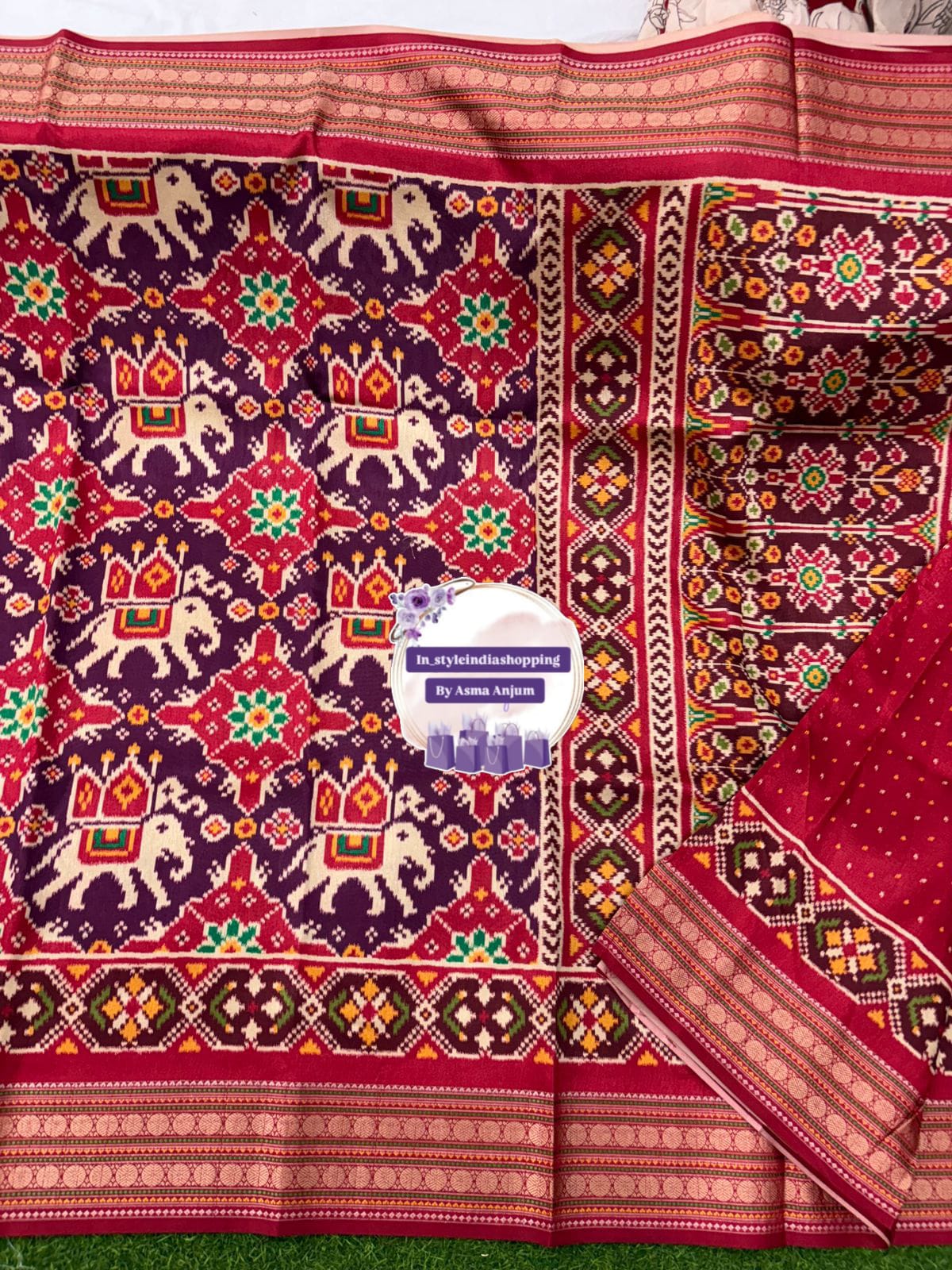 🌷Beautiful and classy Twill Patola Inspired Fancy Vidarbha Ikkat Patola Silk Sarees With Allover Patola printed design and Contrast Vidarbha weaving Borders and contrast blouse 🌷