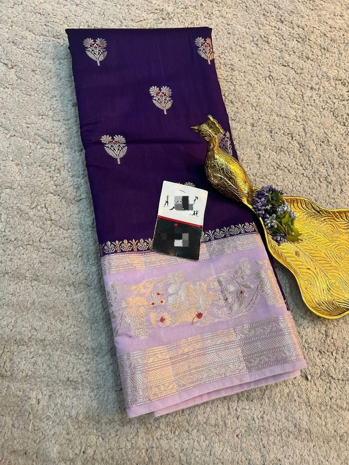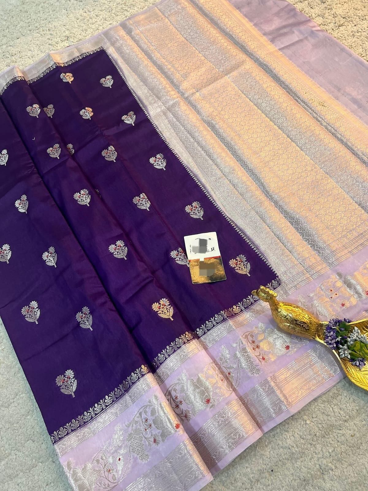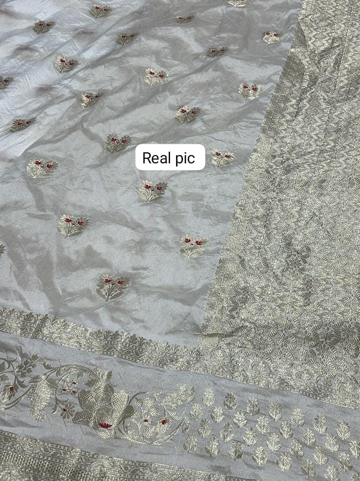 *Banarasi handloom row mango silk dyble fabric Saree*