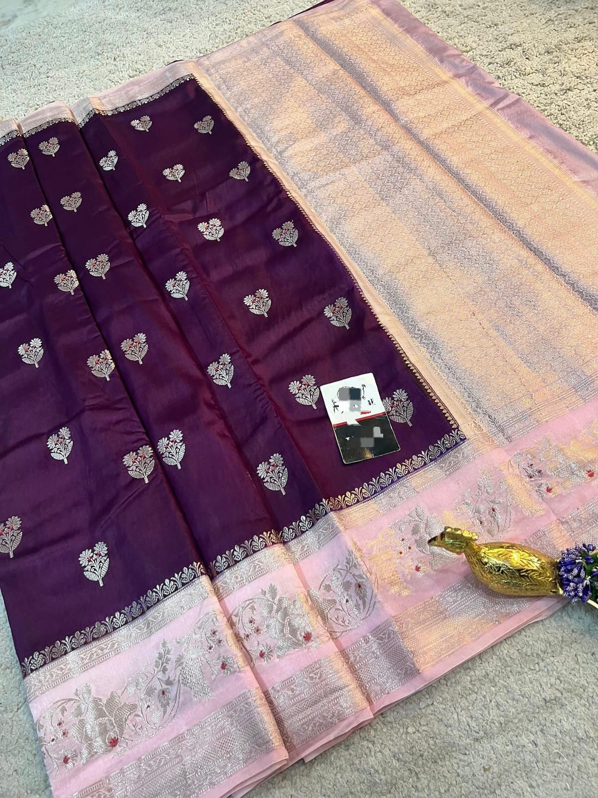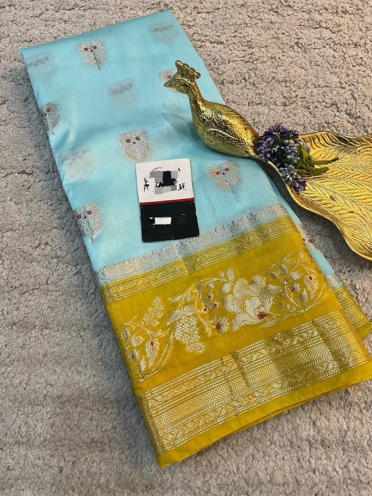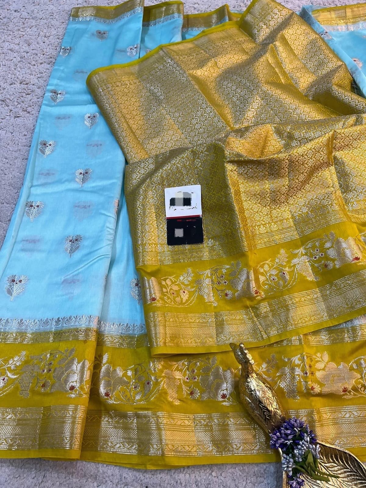 *Banarasi handloom row mango silk dyble fabric Saree*