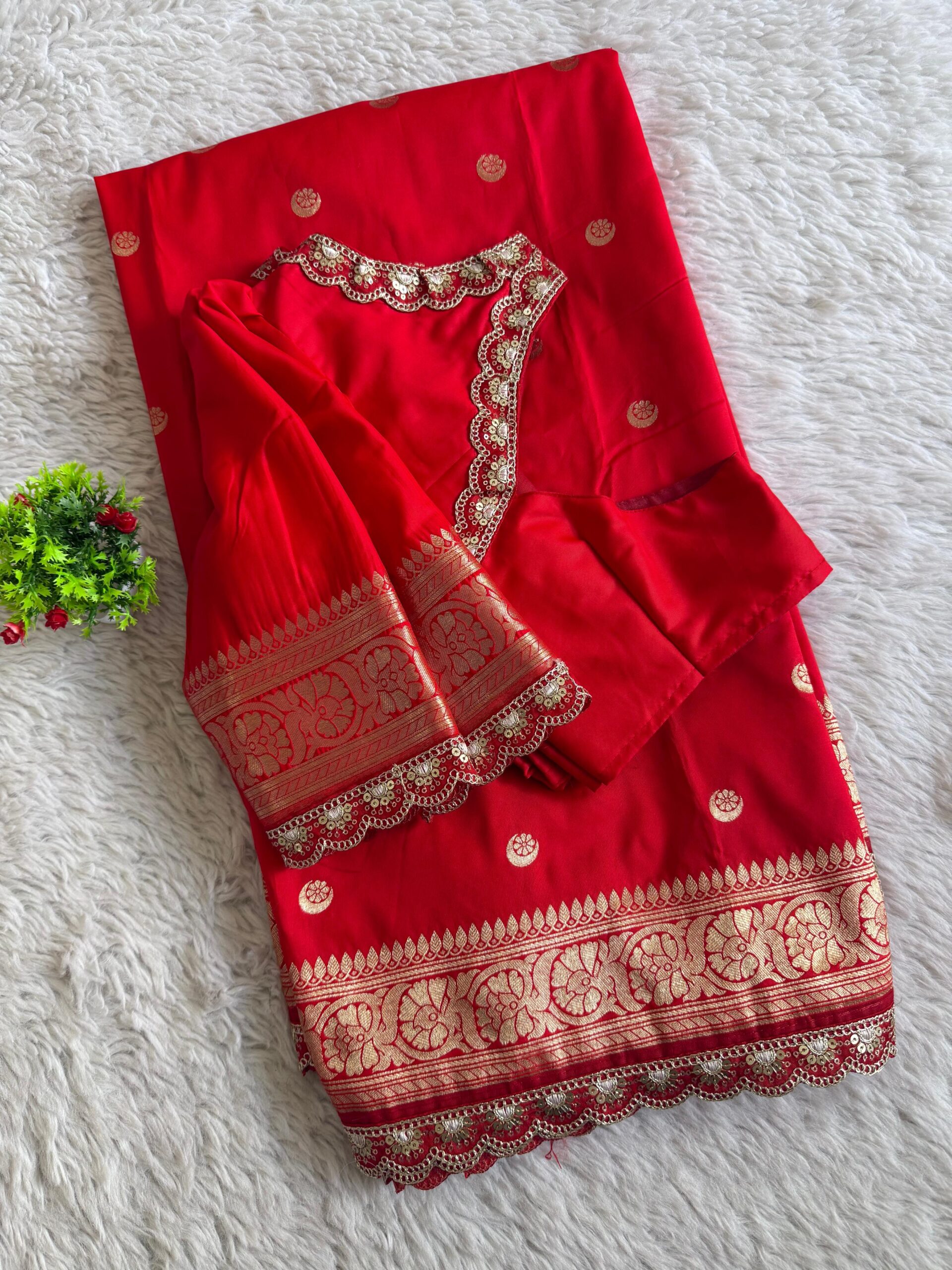 Banarasi Pattu saree with Moon & Flower Weaving on all over the saree