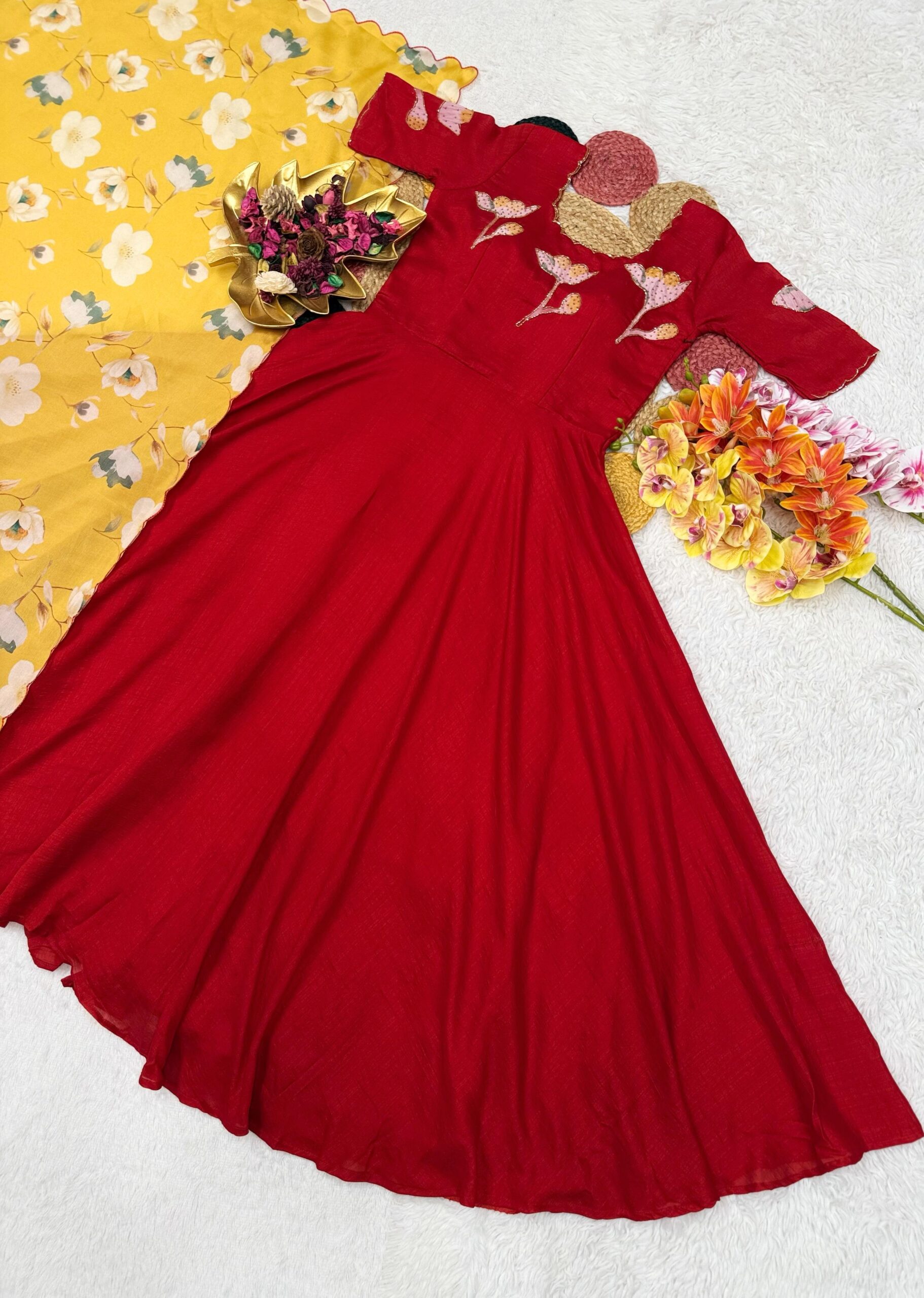 ✨ Launching Our Latest Beautiful Vichitra Hand painted Maggam Work Gown with Dupatta – Where Elegance Meets Comfort! ✨