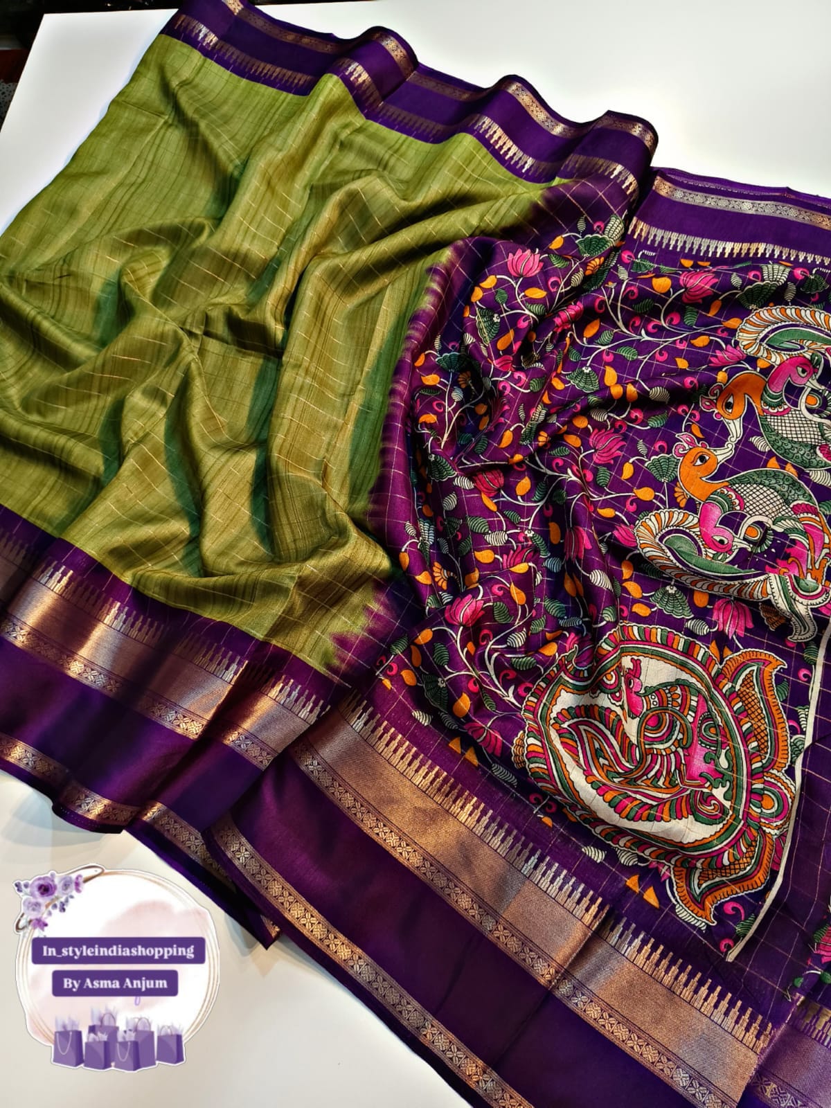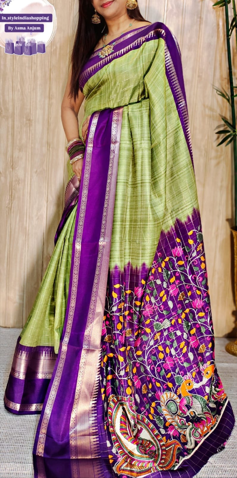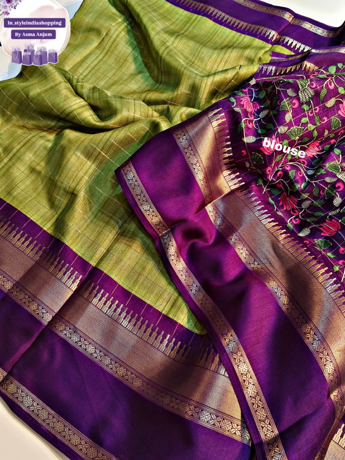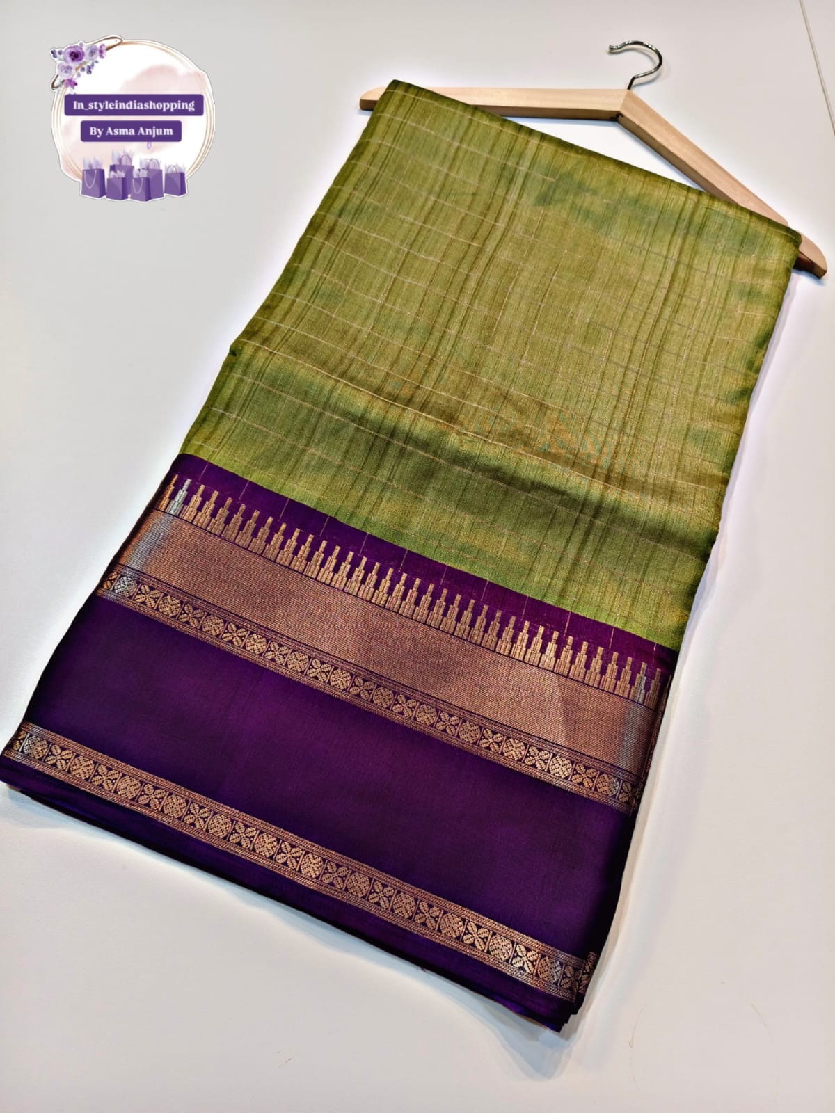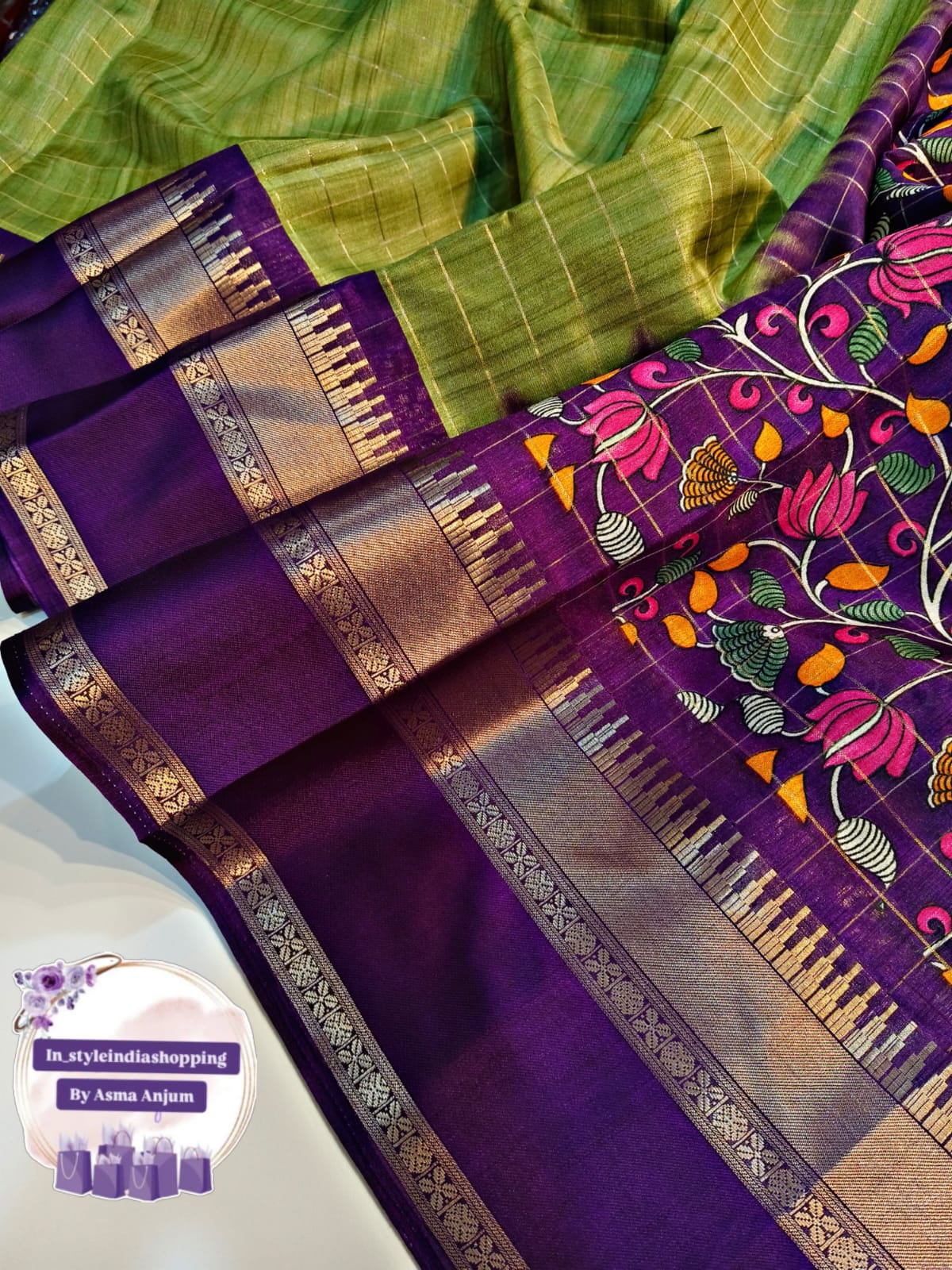*Beautiful Mangalagiri silk saree with all over zari checks along with contrast weaving gap border