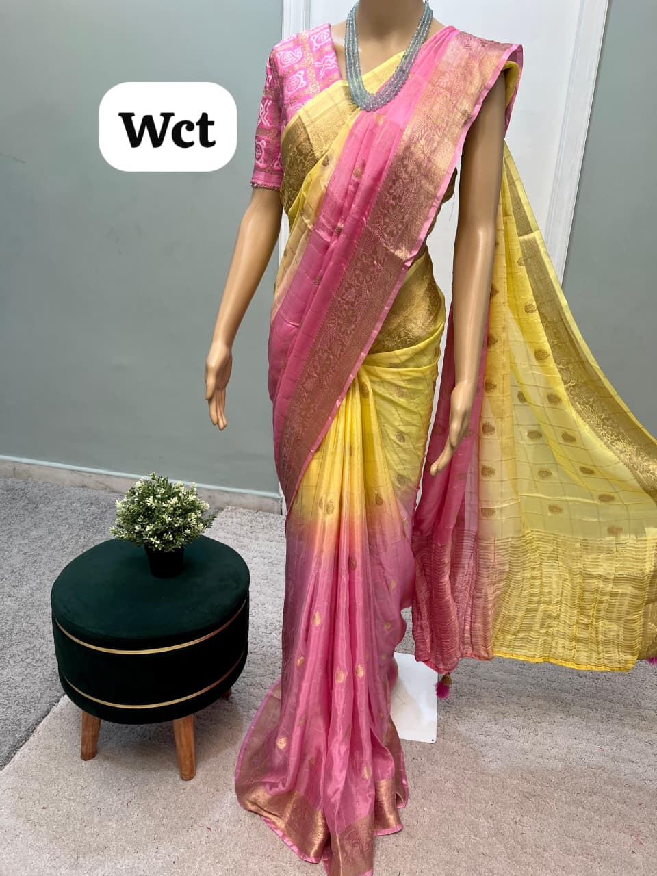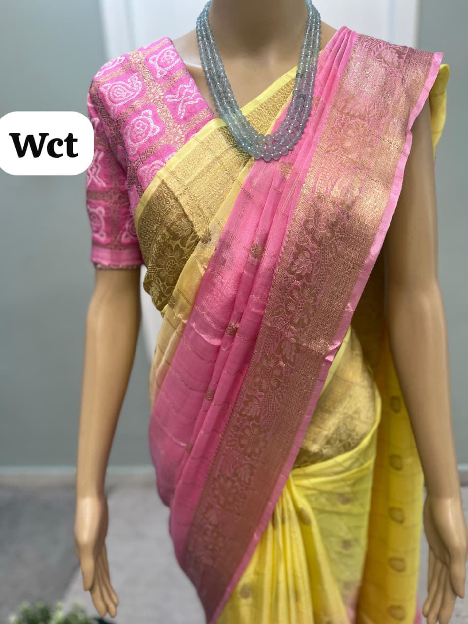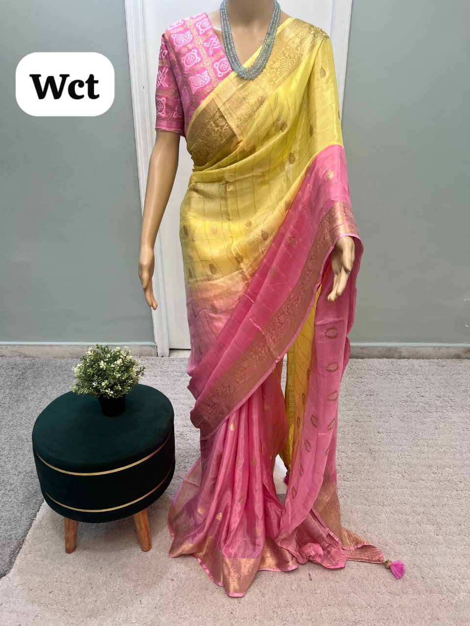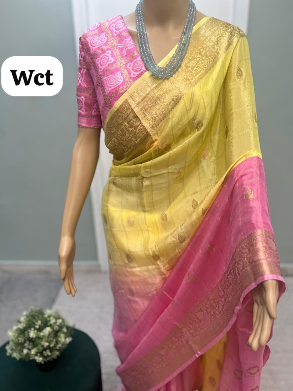 *Chinnon Georgette sarees with allover zari weaving checks and zari weaving butties ….flowy and Body hugging sarees