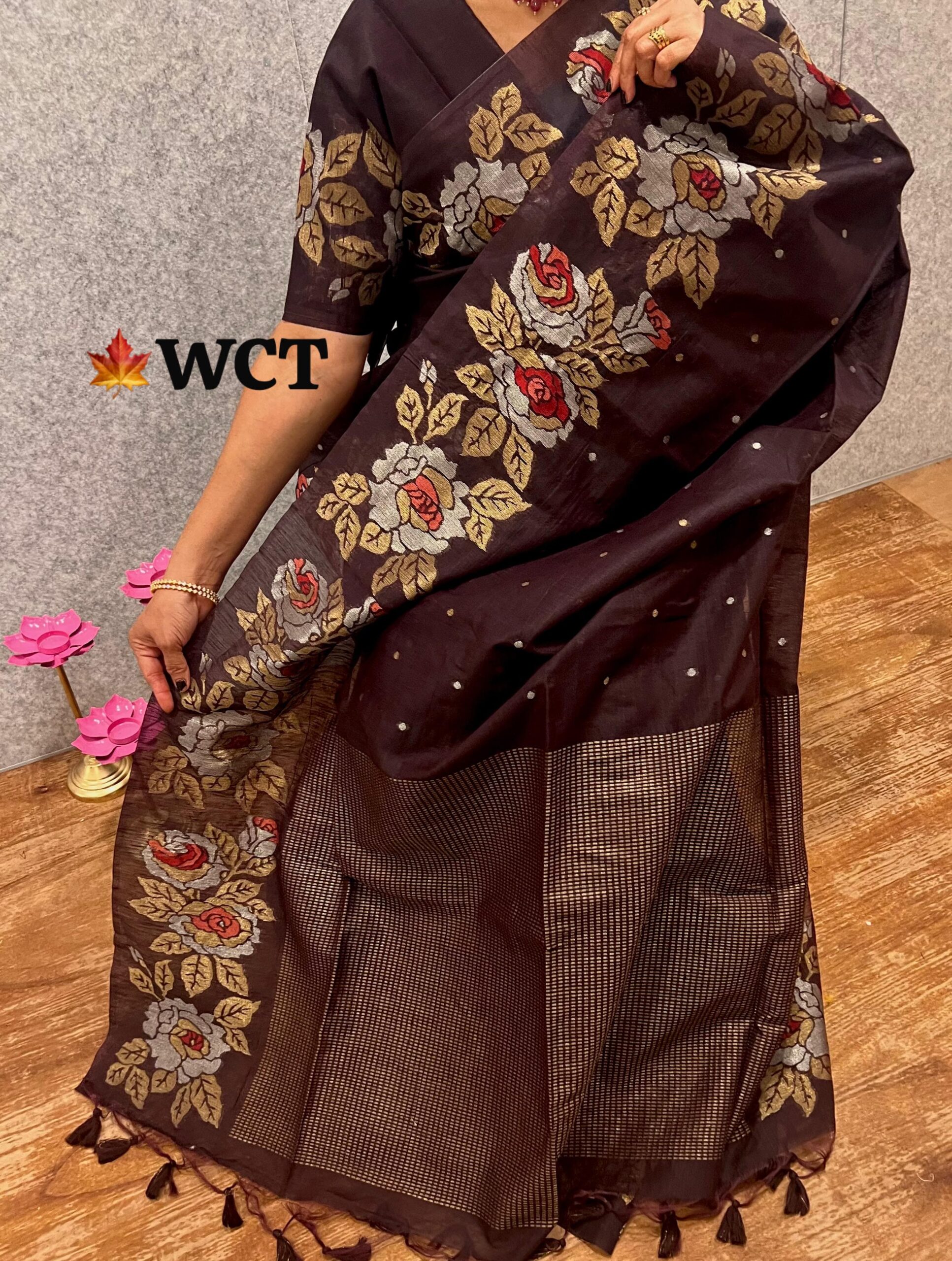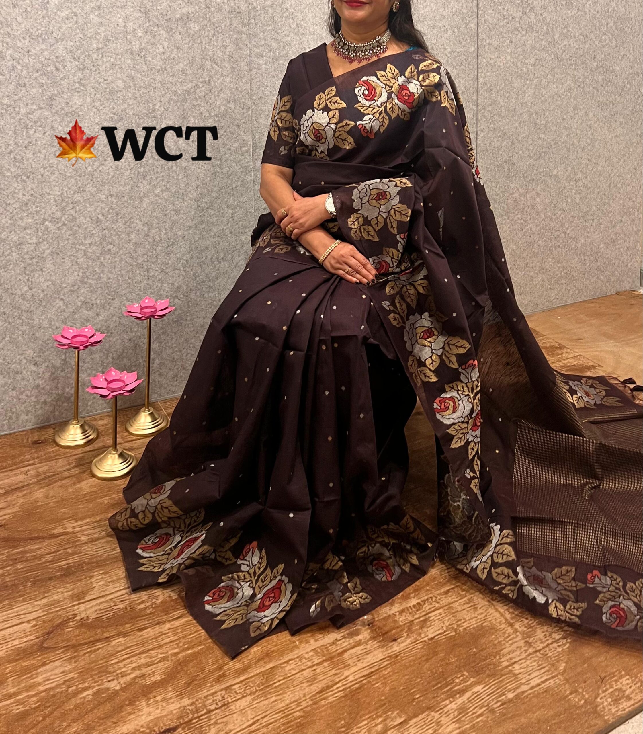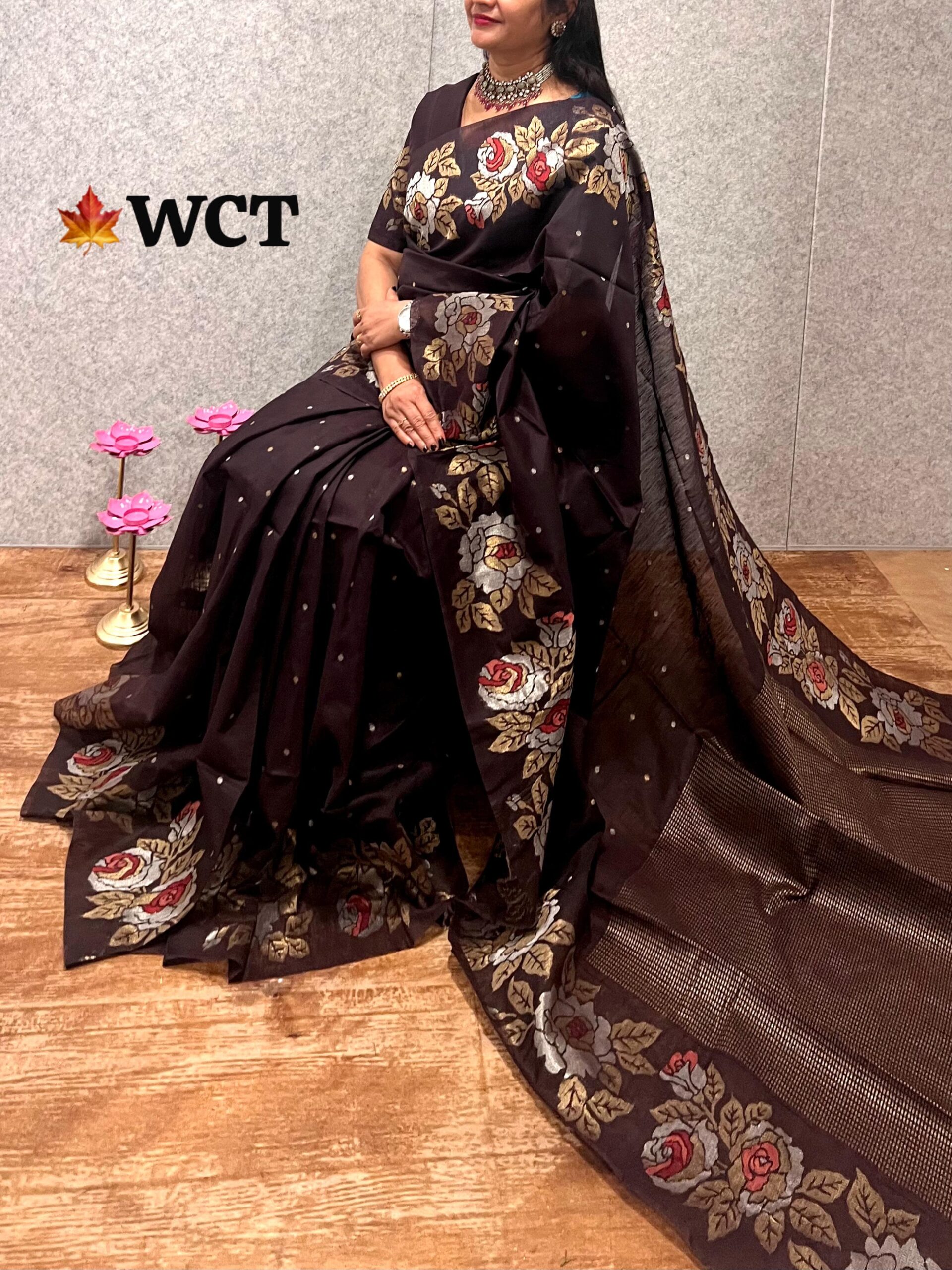 🦩 Elegant Tussar zamdhani sarees …Allover silver and gold zari weaving small butties