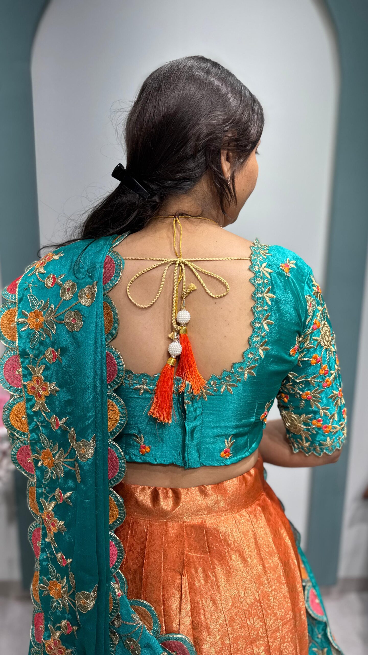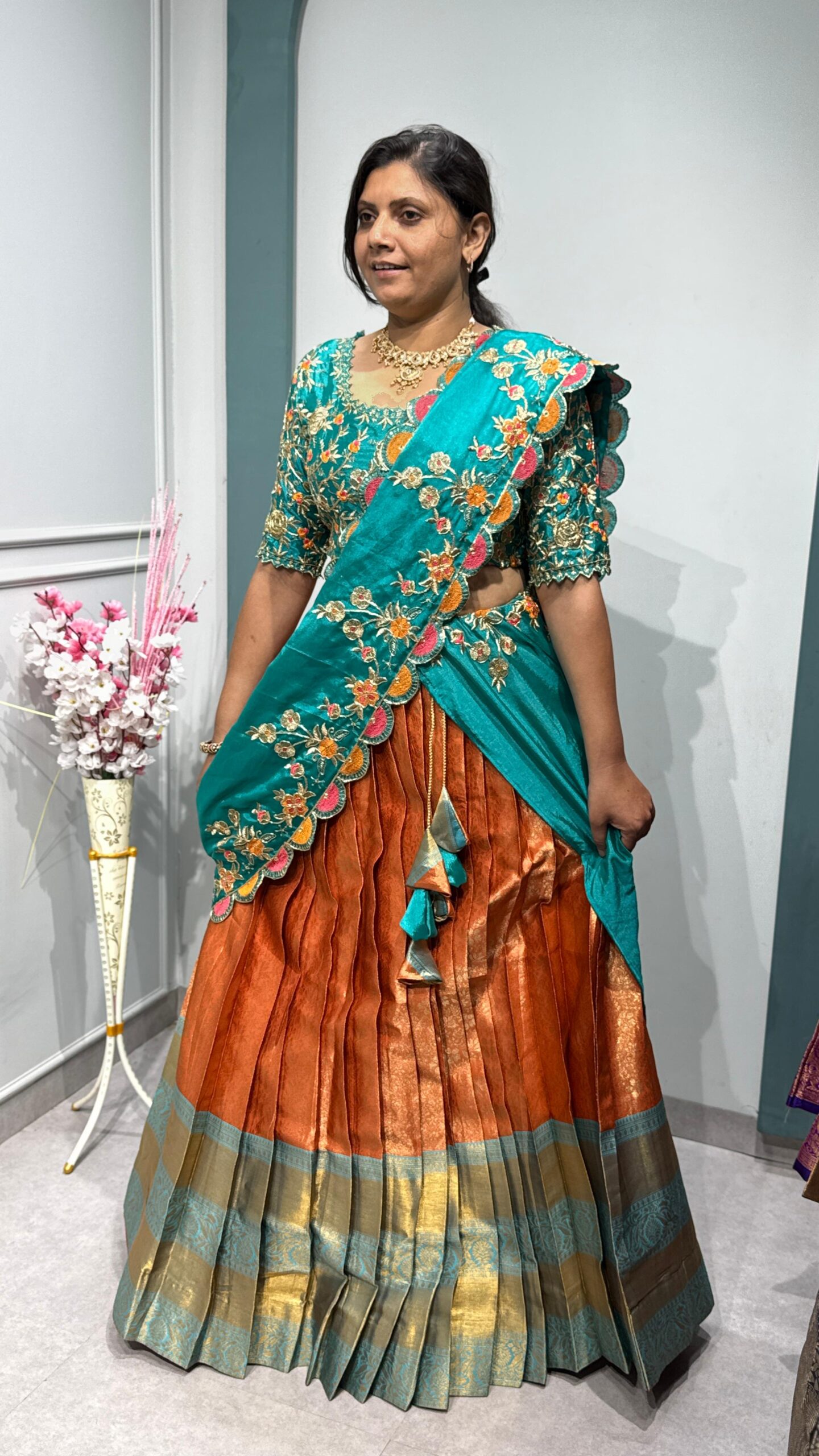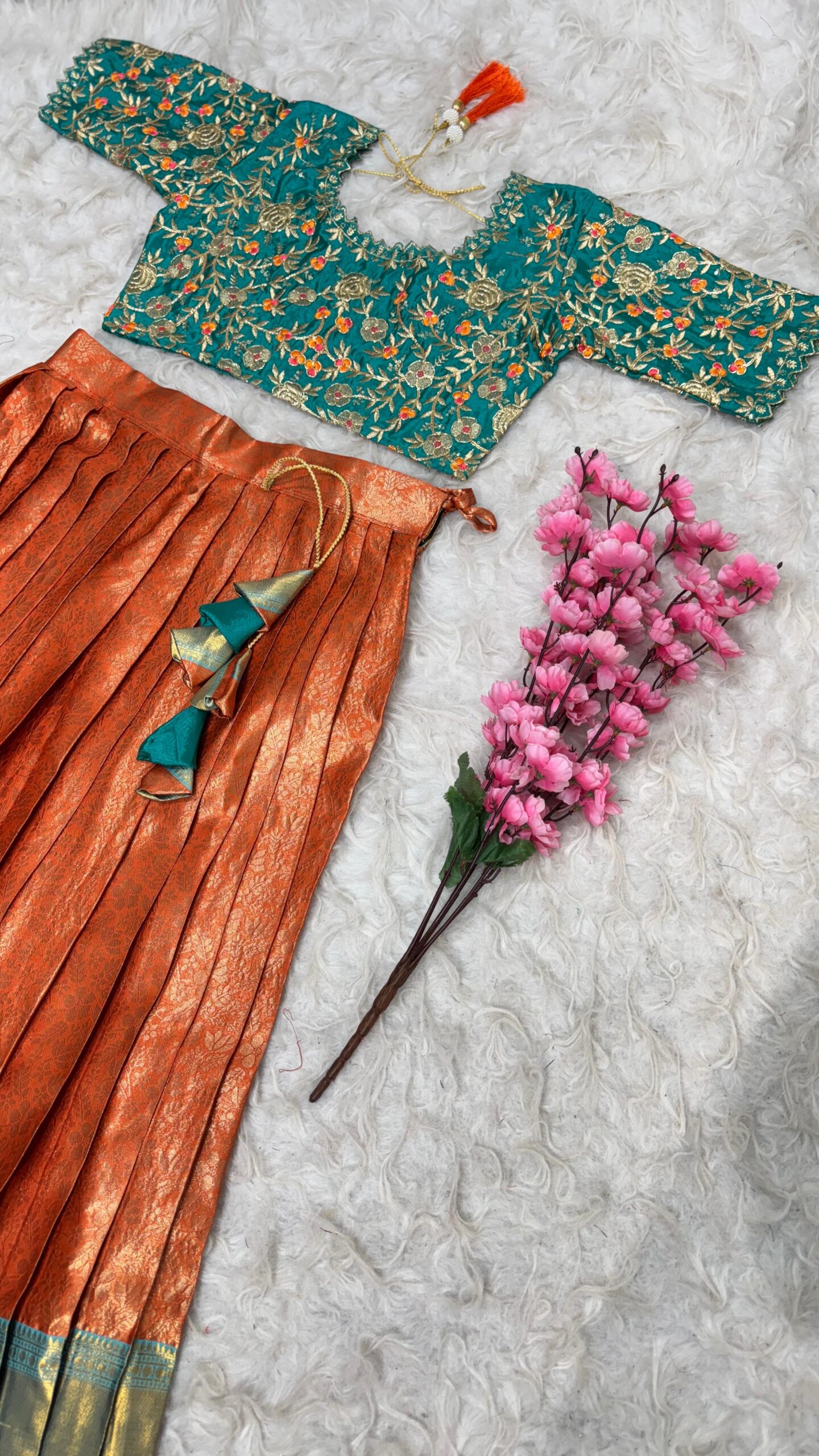 Lehanga Details:- Full stiched Kanchipattu Silk With big jequard Border attached with Canvas patta zip and Latkan