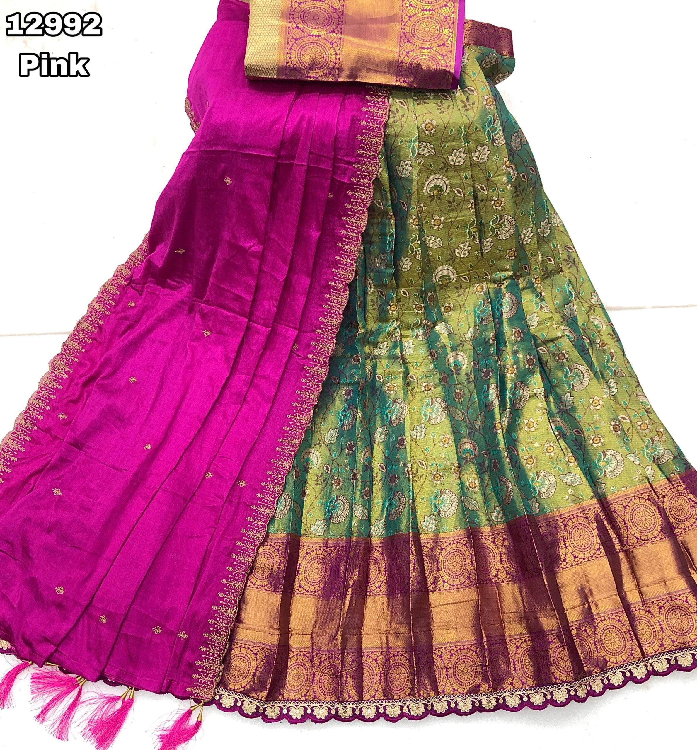 Fabric details – kanjivaram silk Gold zari weaving with floral design mina weaving comes with contrast weaving border also now comes with trending embroidery work lace