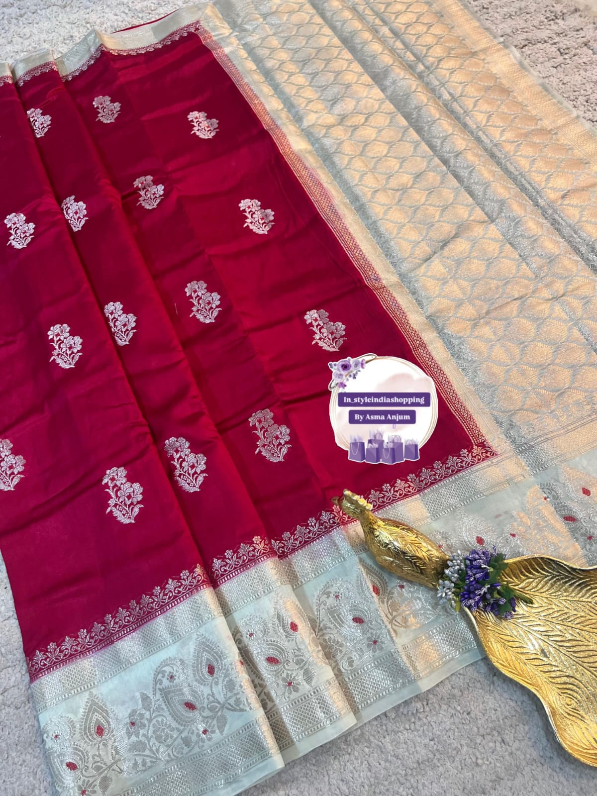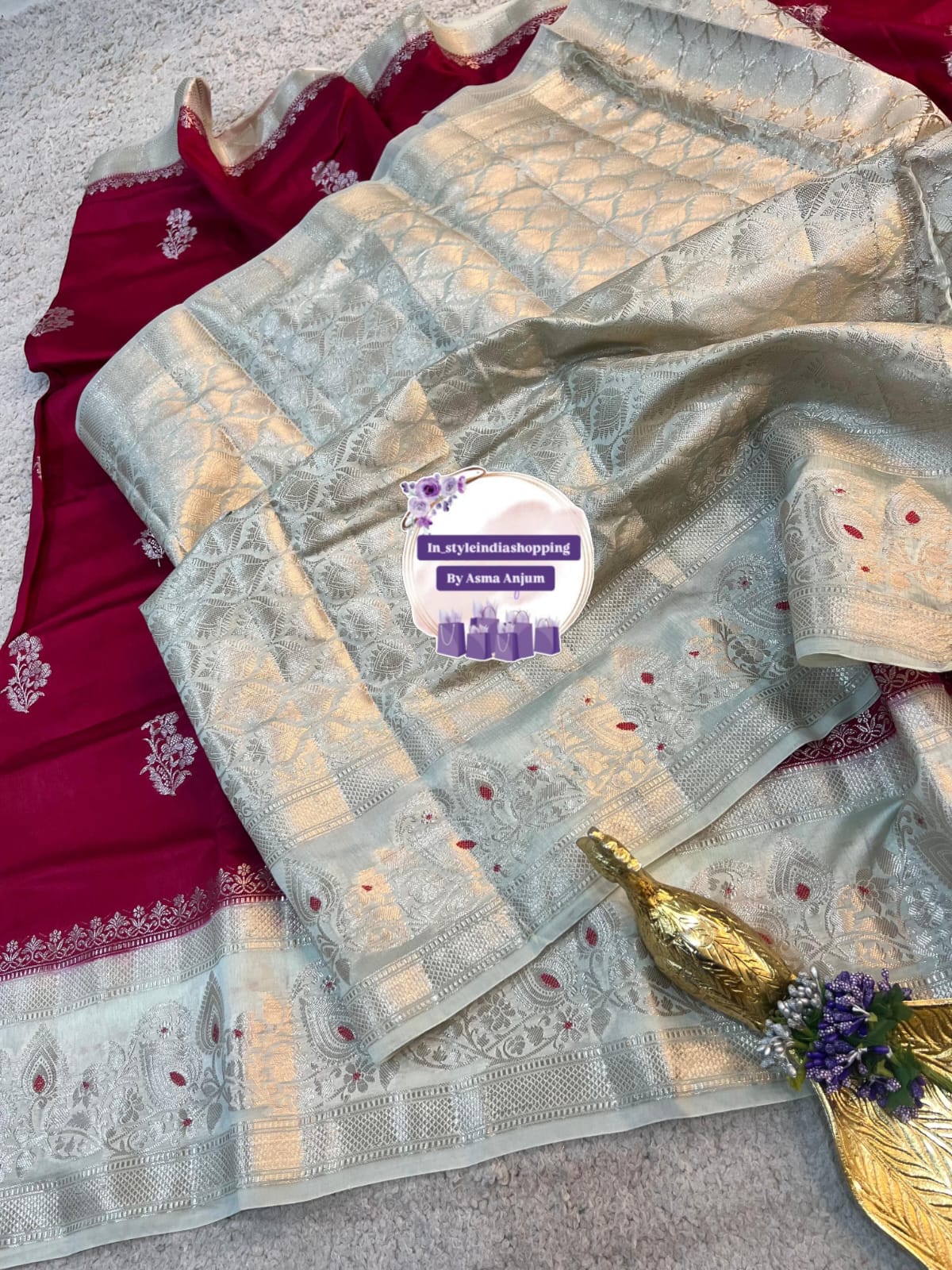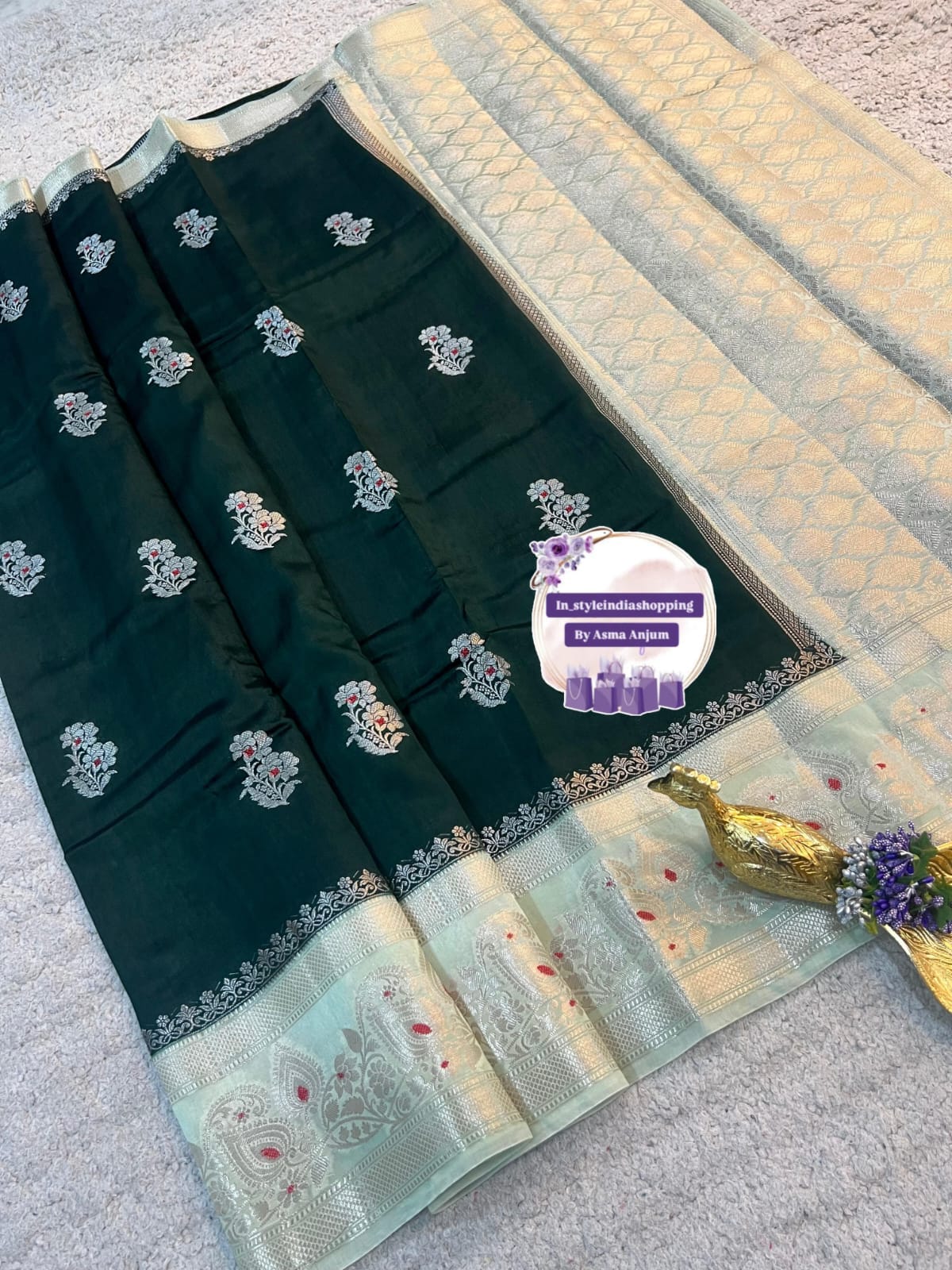 🦩 Handloom Banarasi Mango pattu sarees with allover zari weaving butties