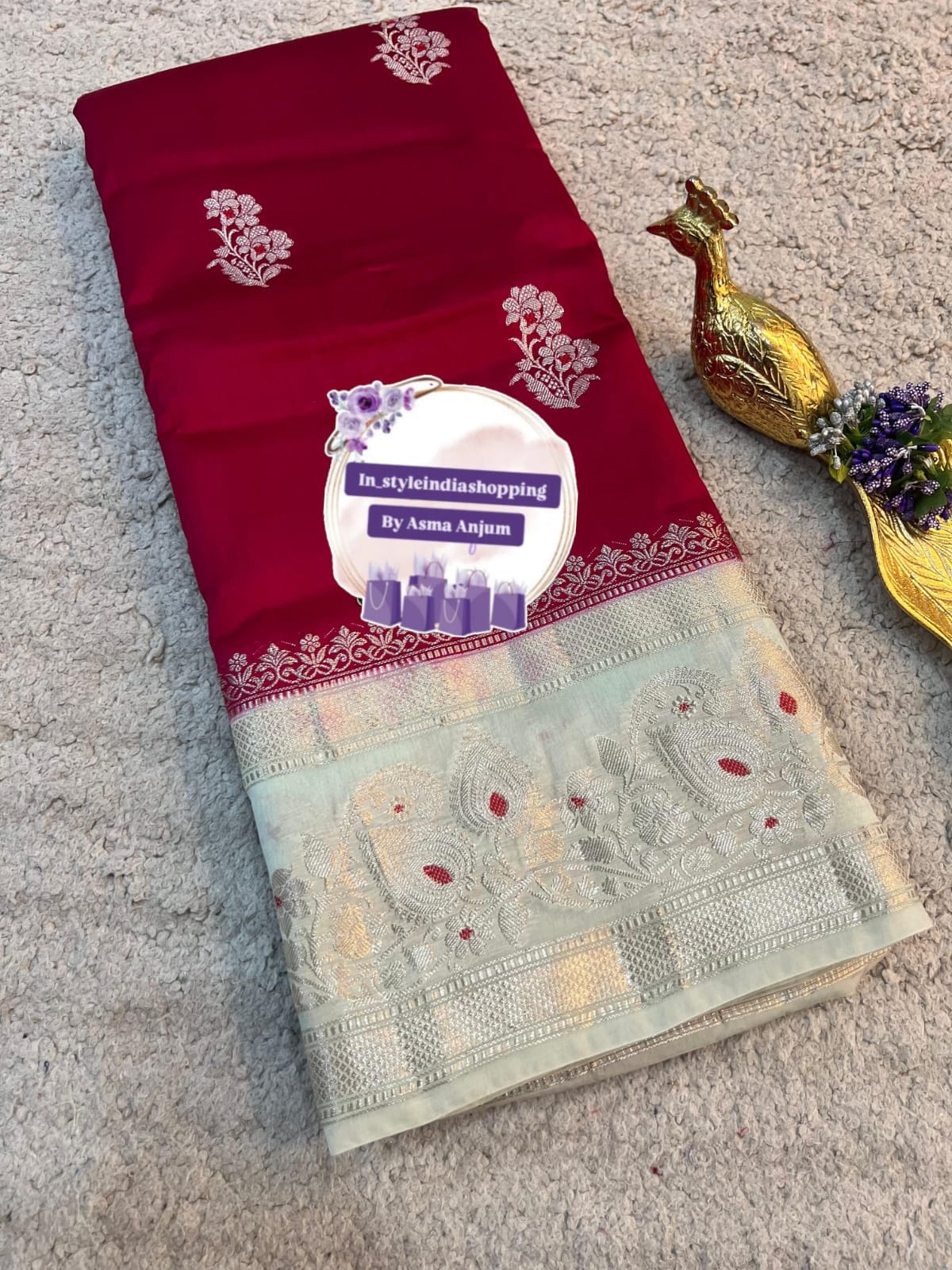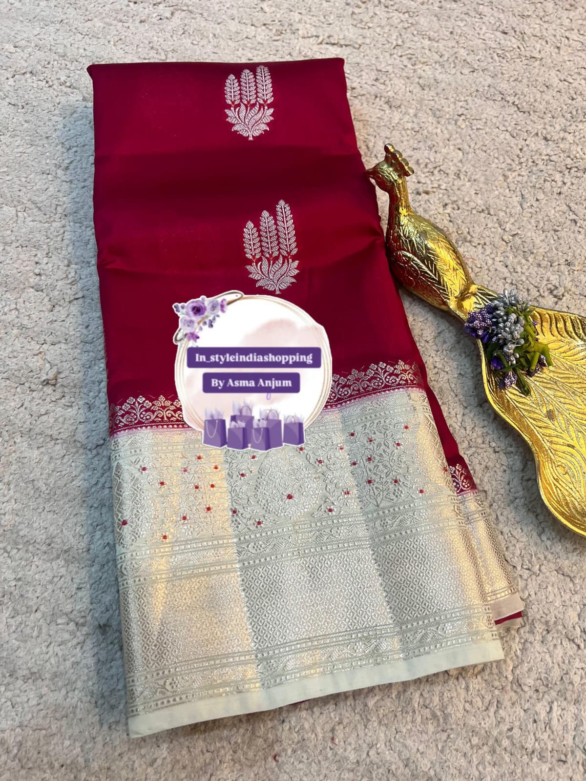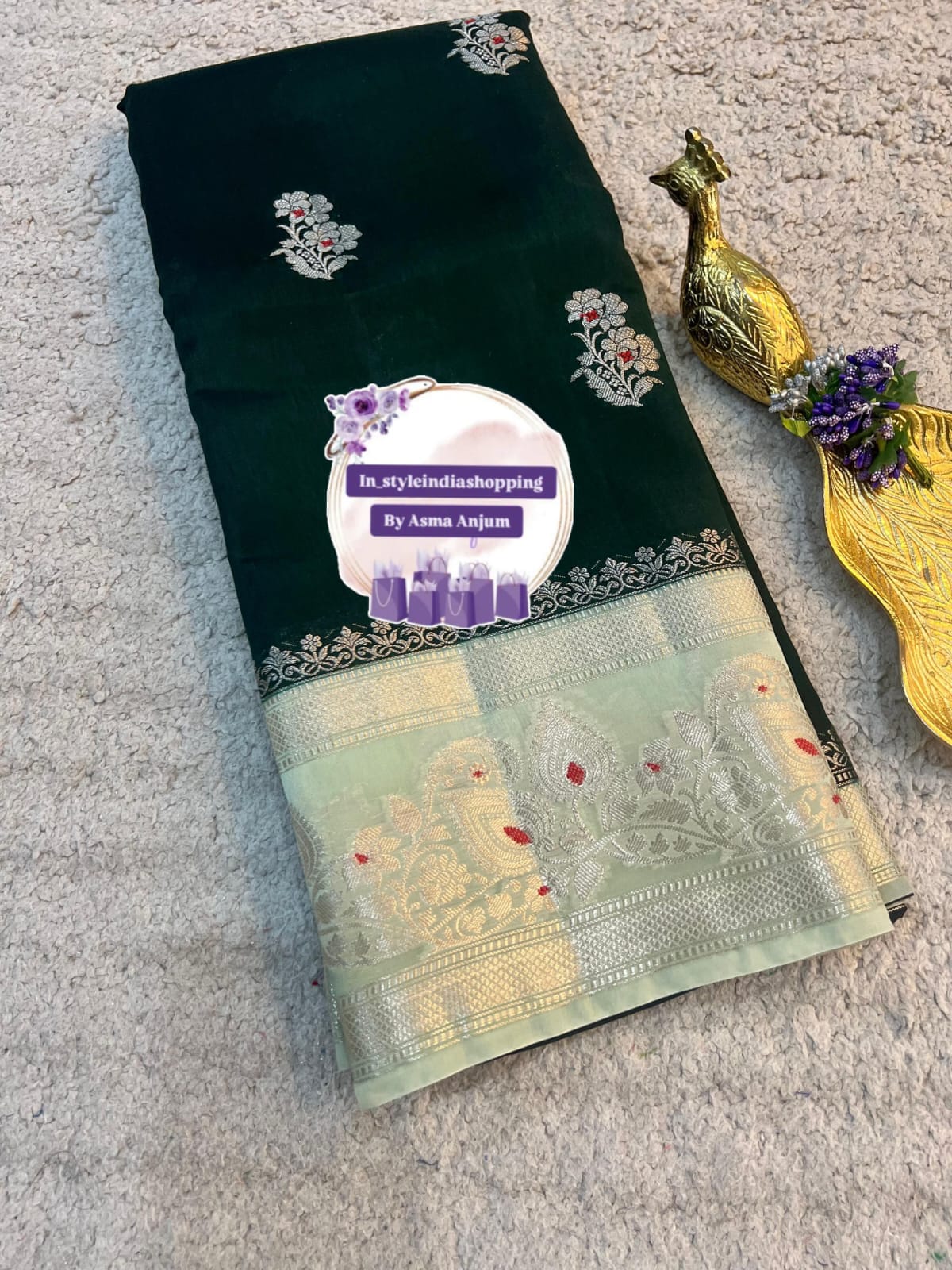 🦩 Handloom Banarasi Mango pattu sarees with allover zari weaving butties