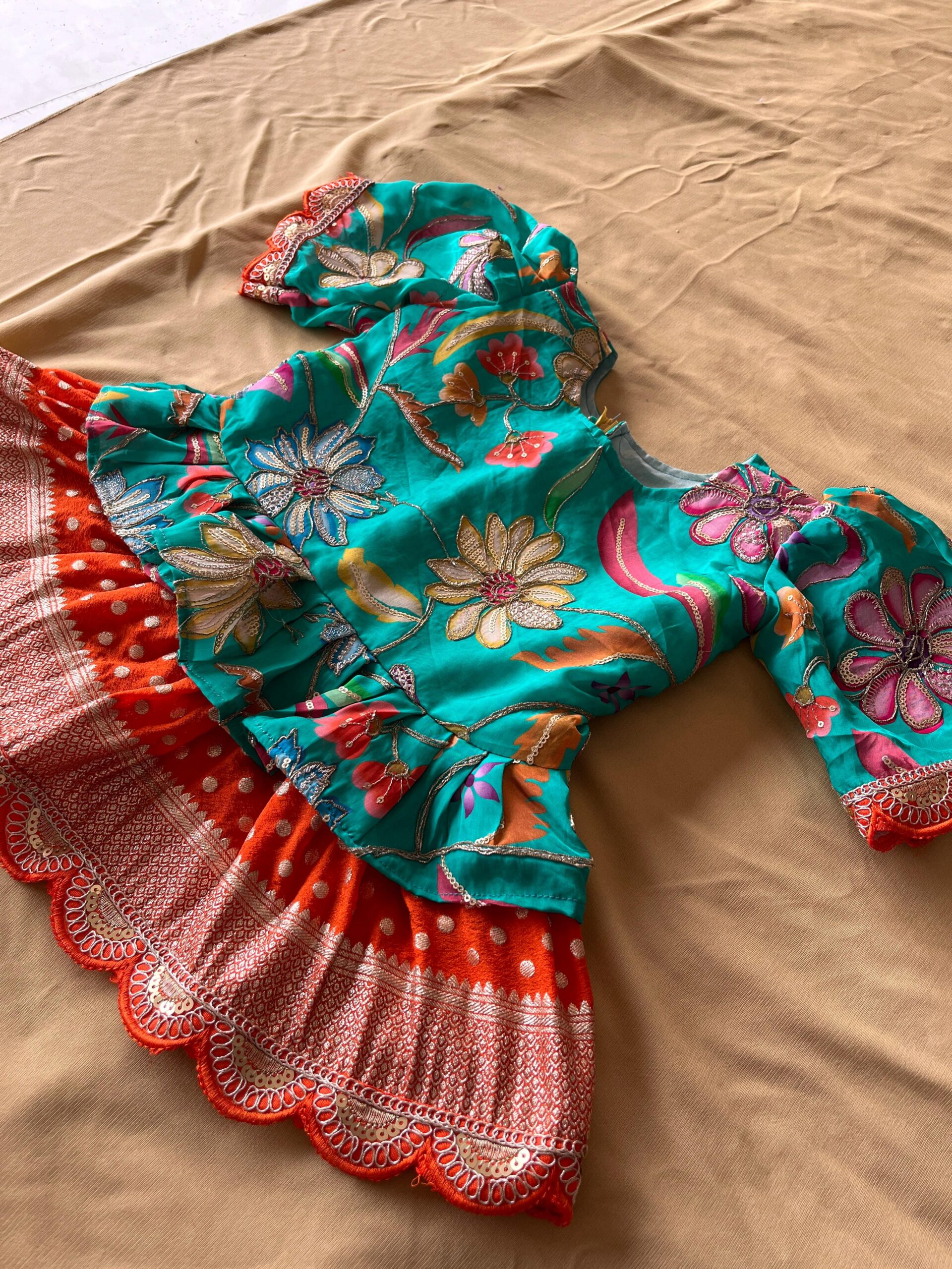 Whether it’s Navratri, Diwali, Pongal, or a birthday, let your child shine in cultural pride with this unique and eye-catching attire