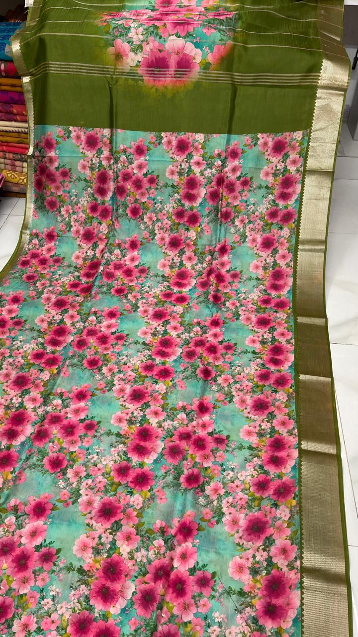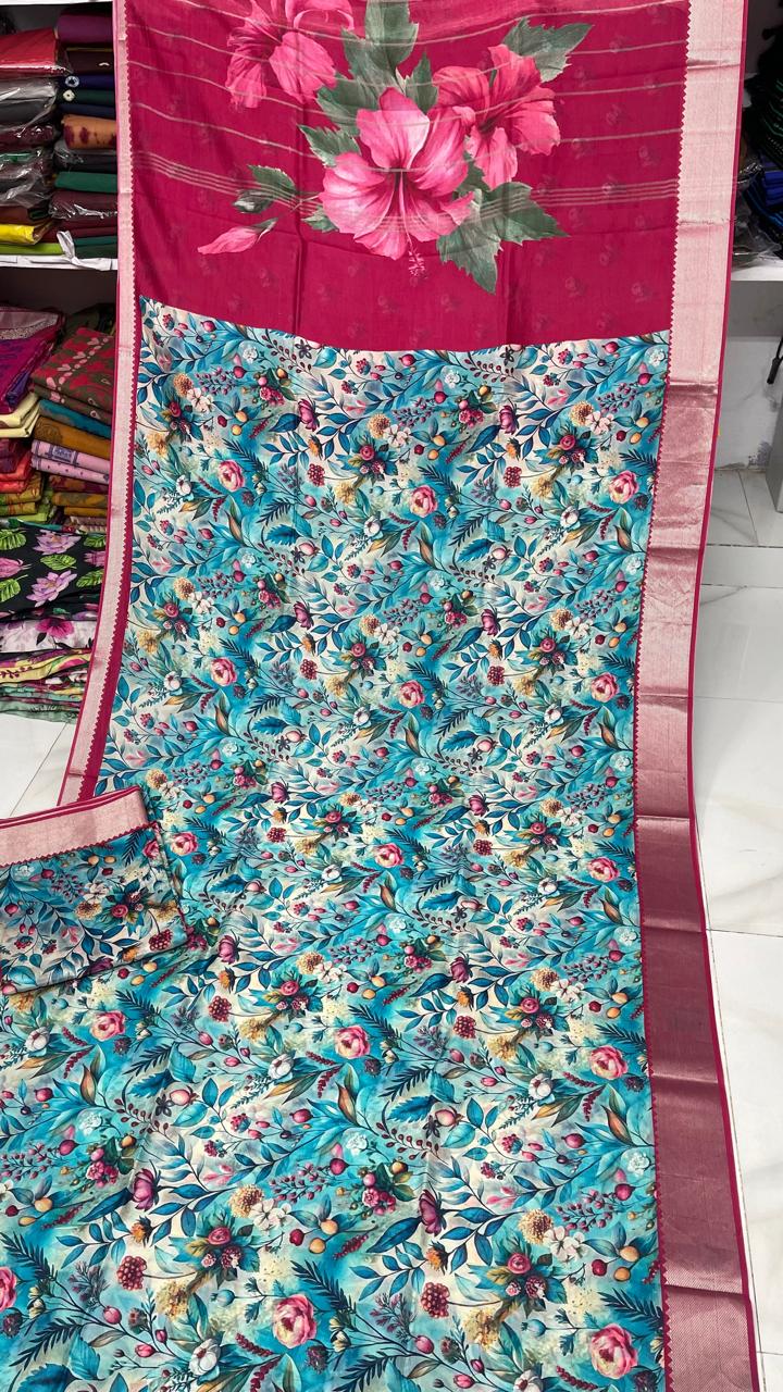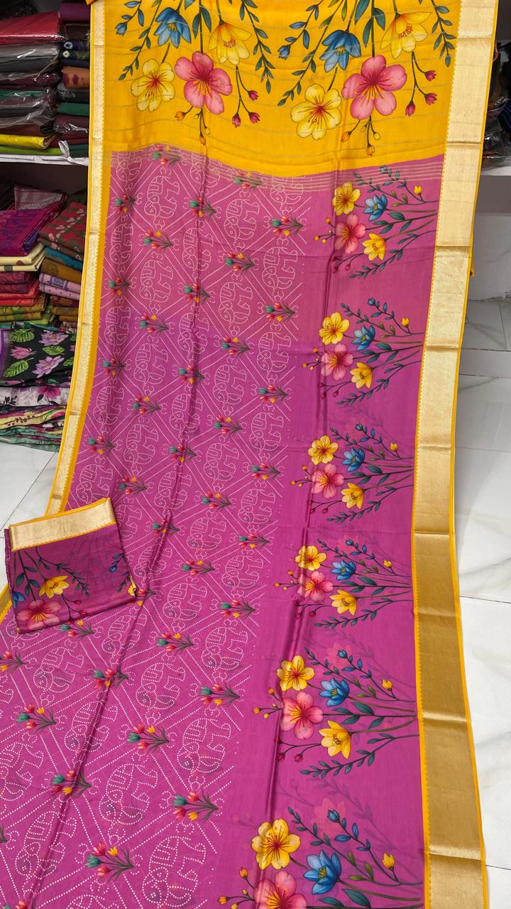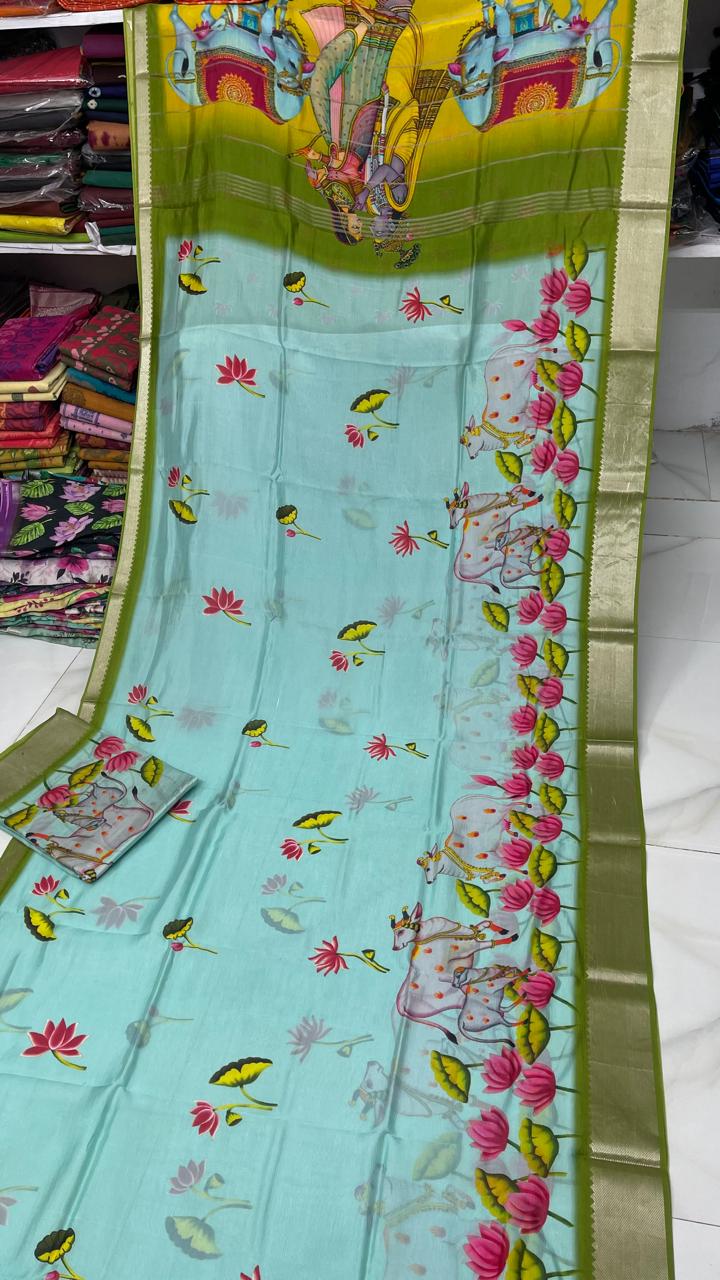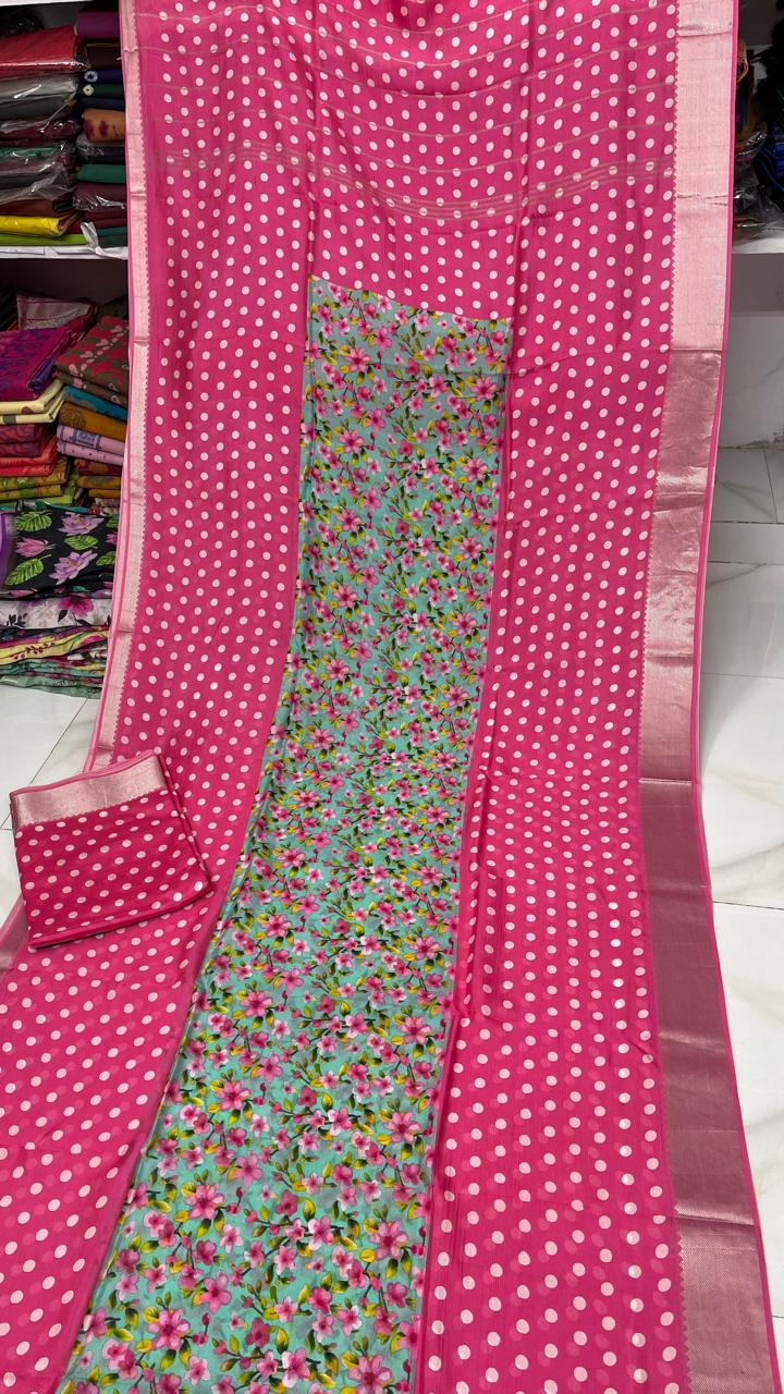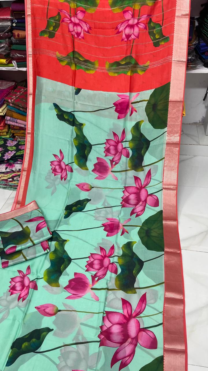 *Mangalagiri pattu by cotton contrast pallu blouse big border mangalagiri handloom pure digital printing sarees