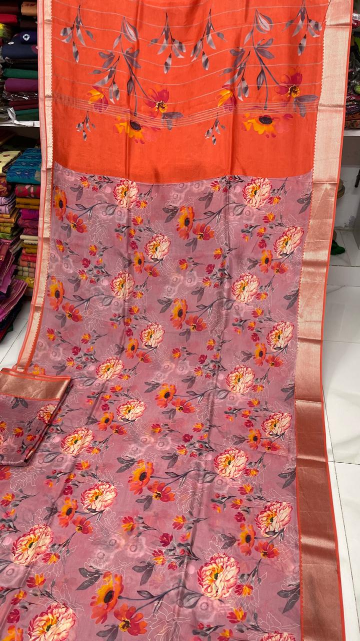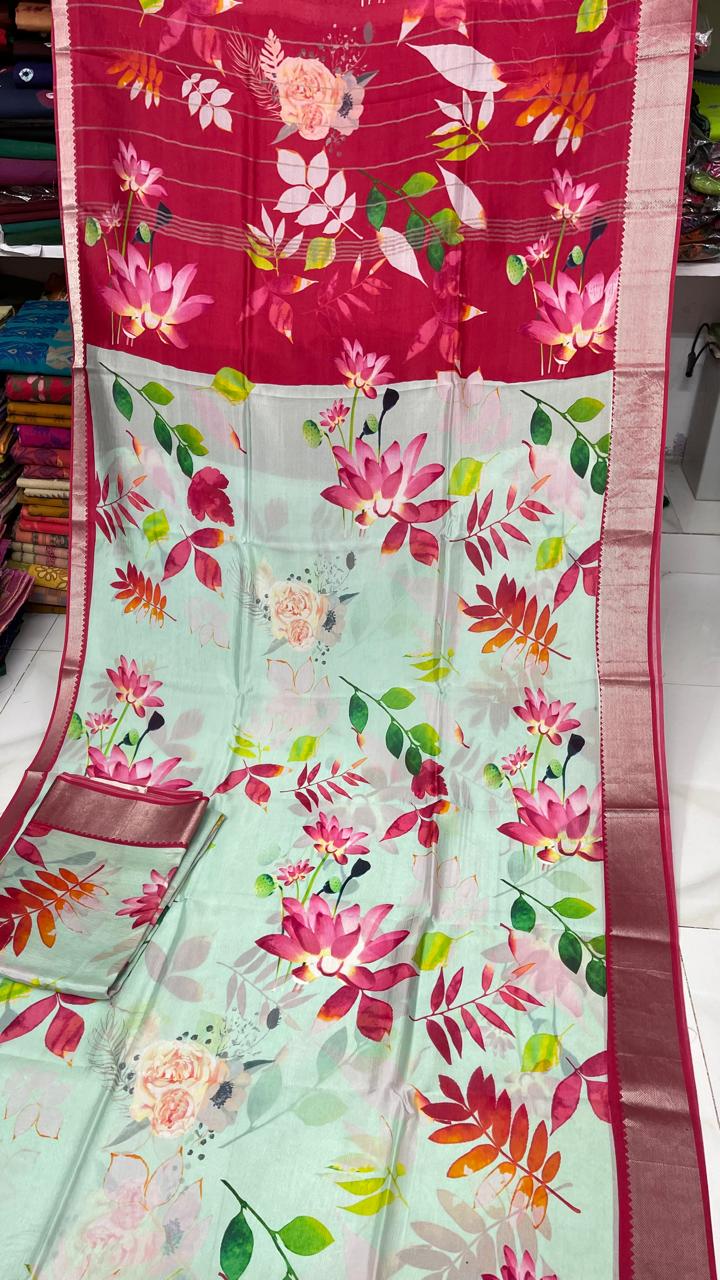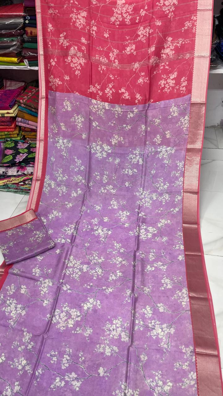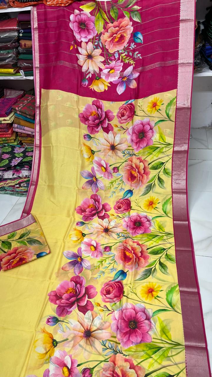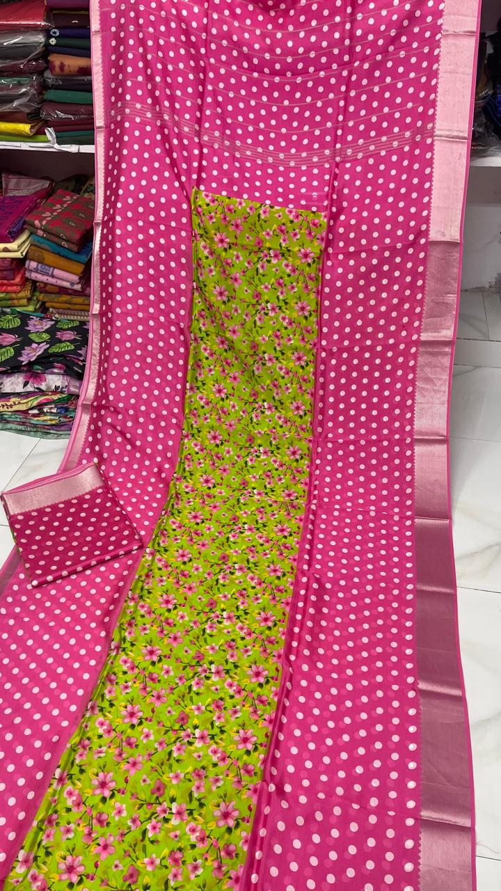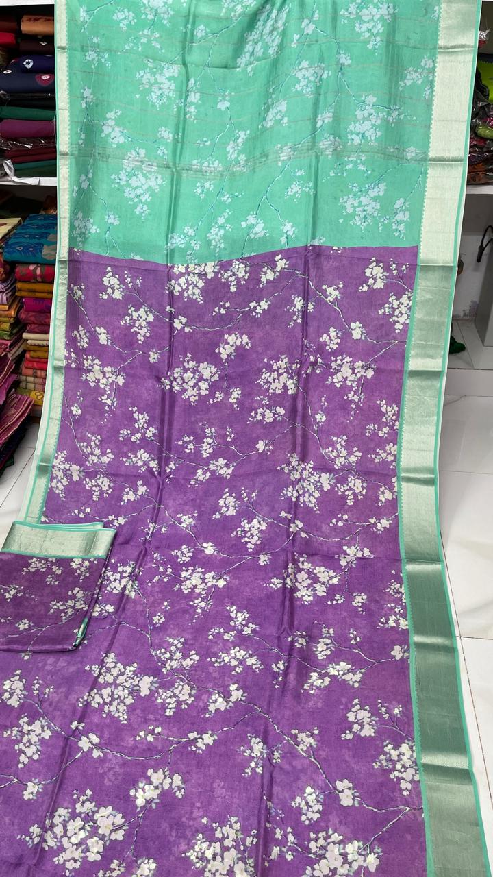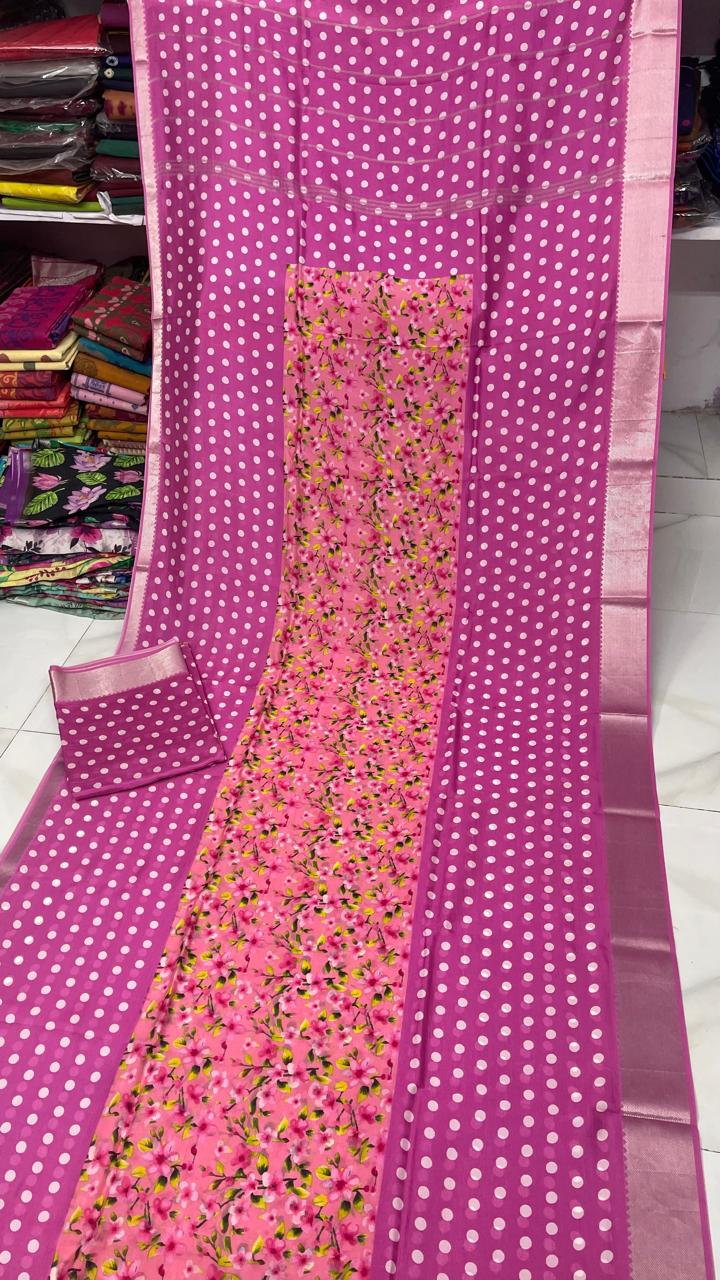*Mangalagiri pattu by cotton contrast pallu blouse big border mangalagiri handloom pure digital printing sarees