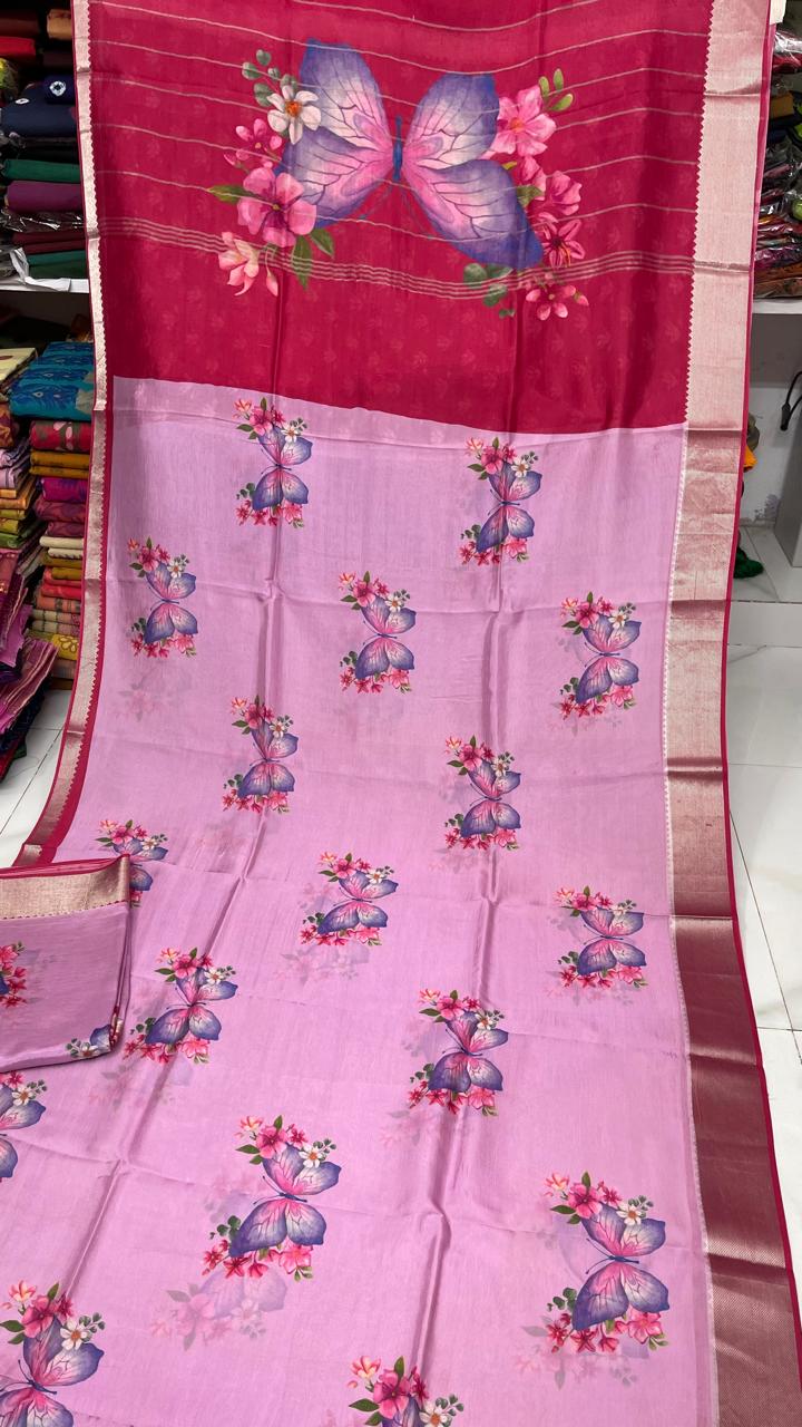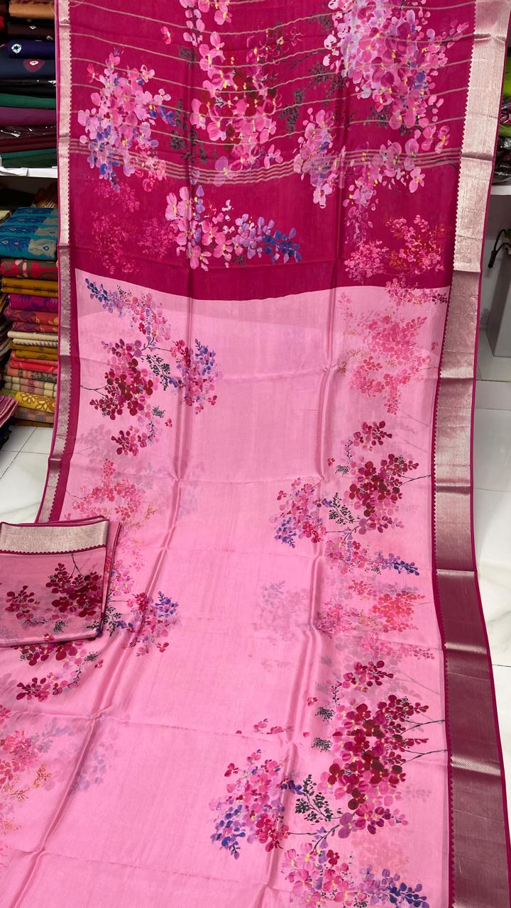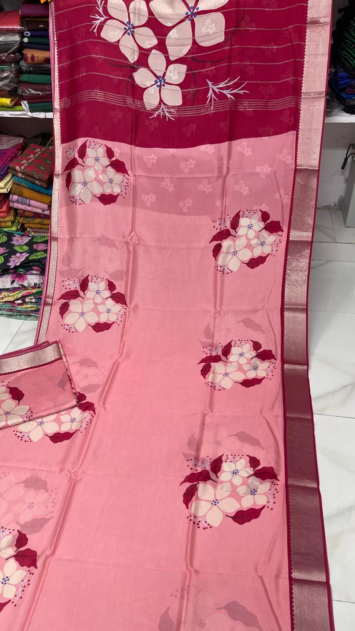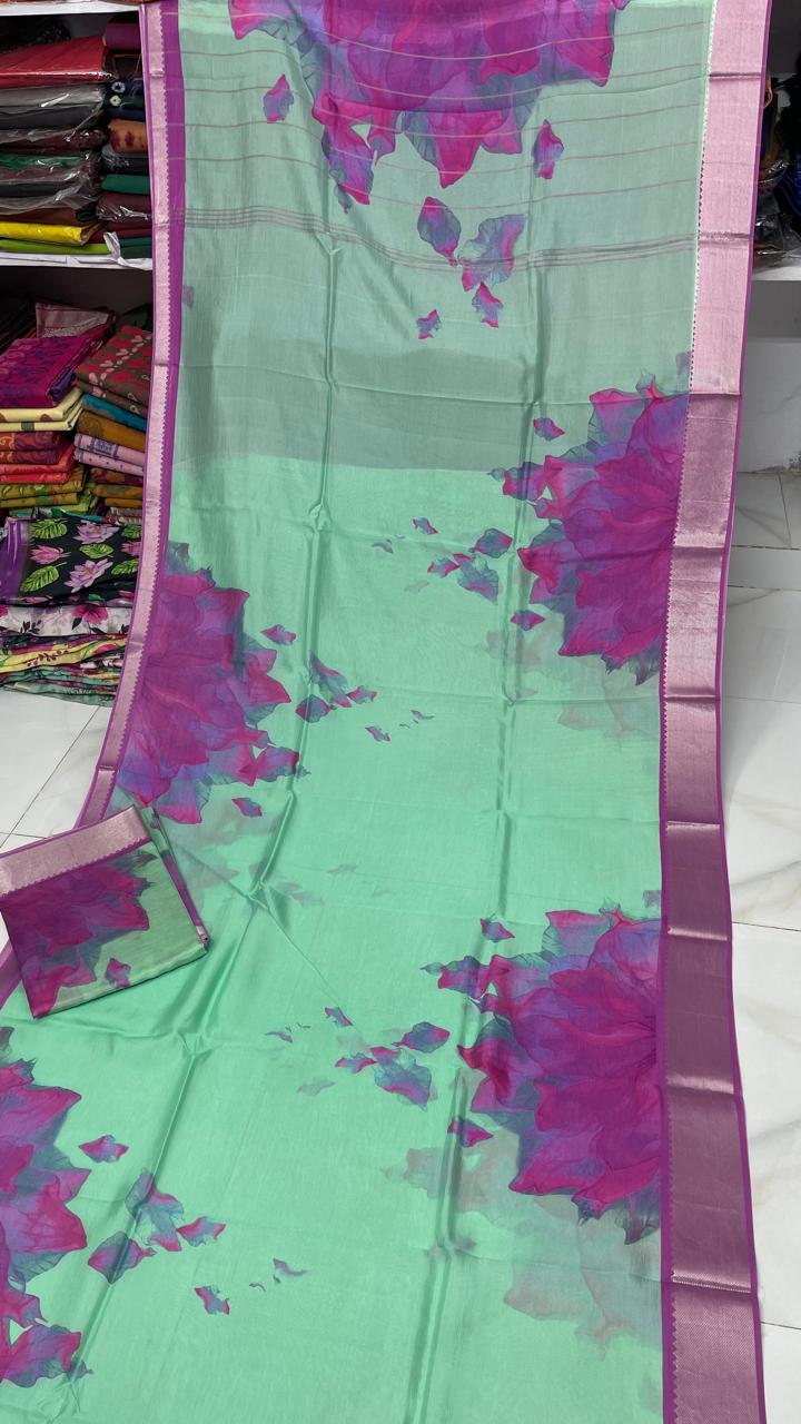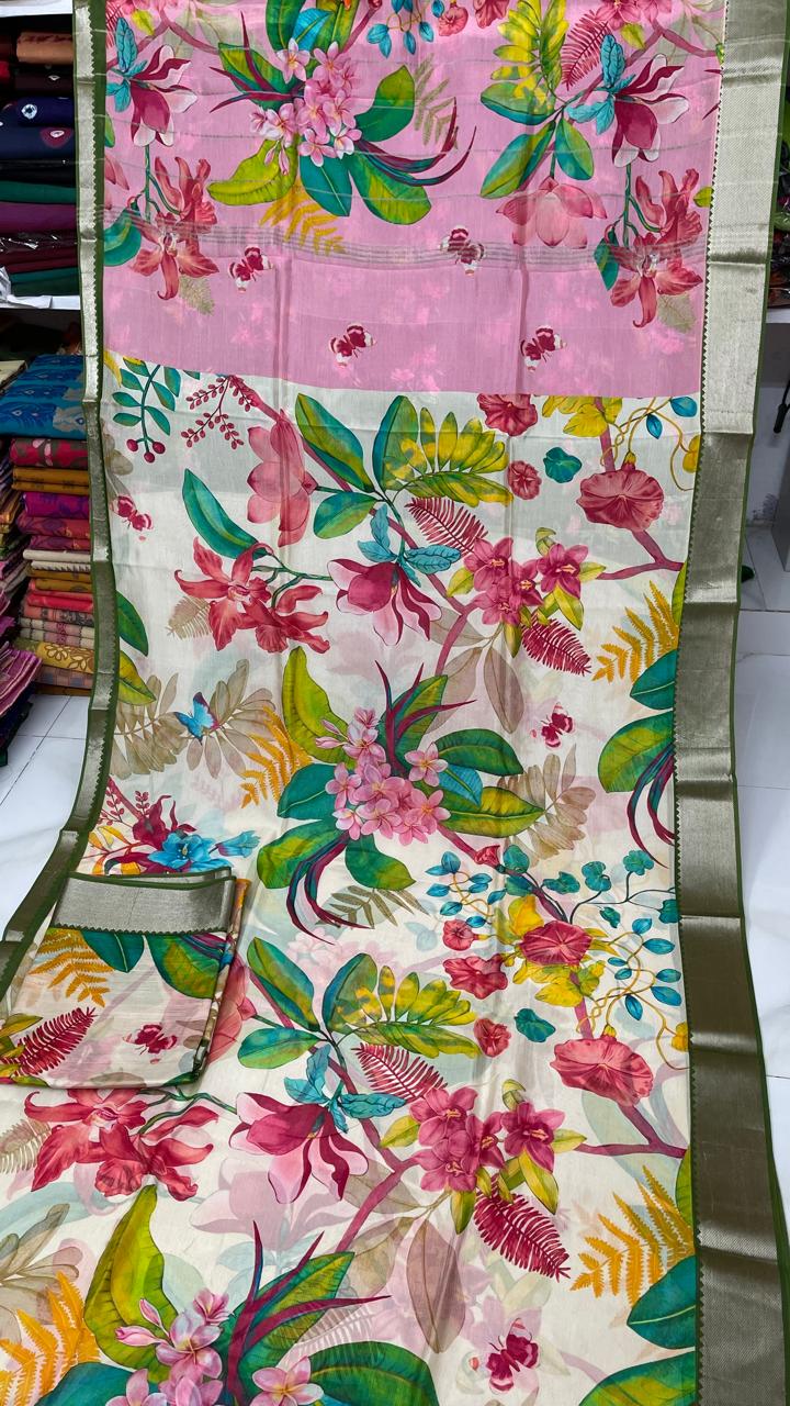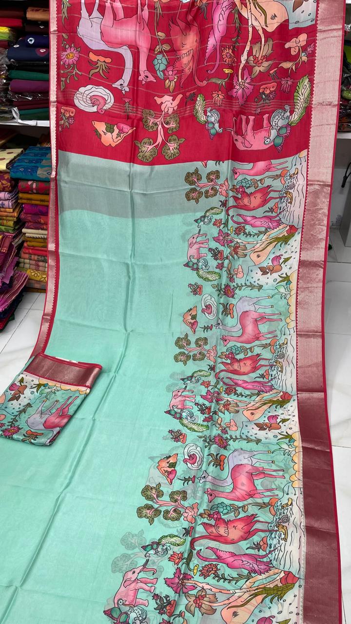 *Mangalagiri pattu by cotton contrast pallu blouse big border mangalagiri handloom pure digital printing sarees