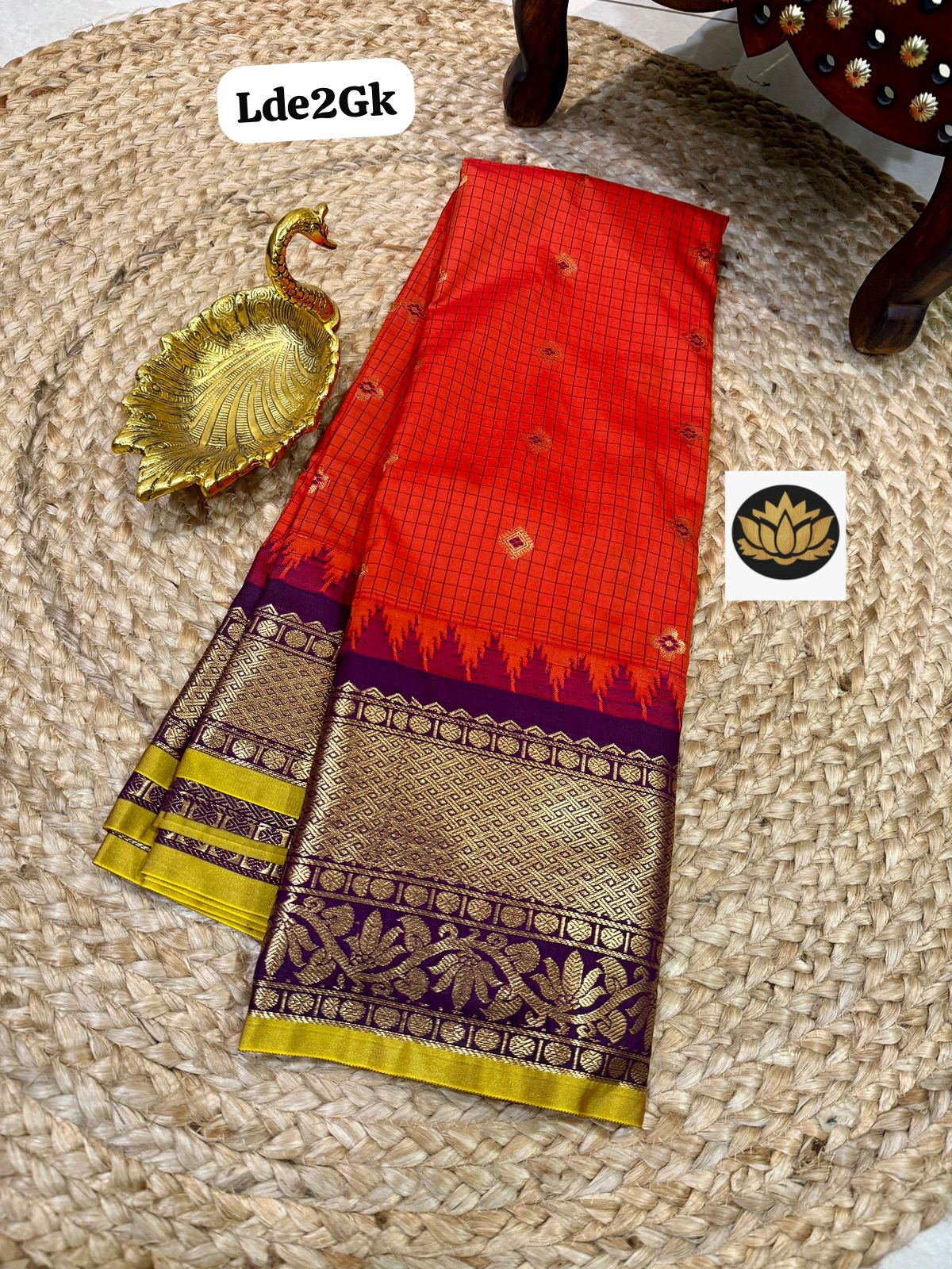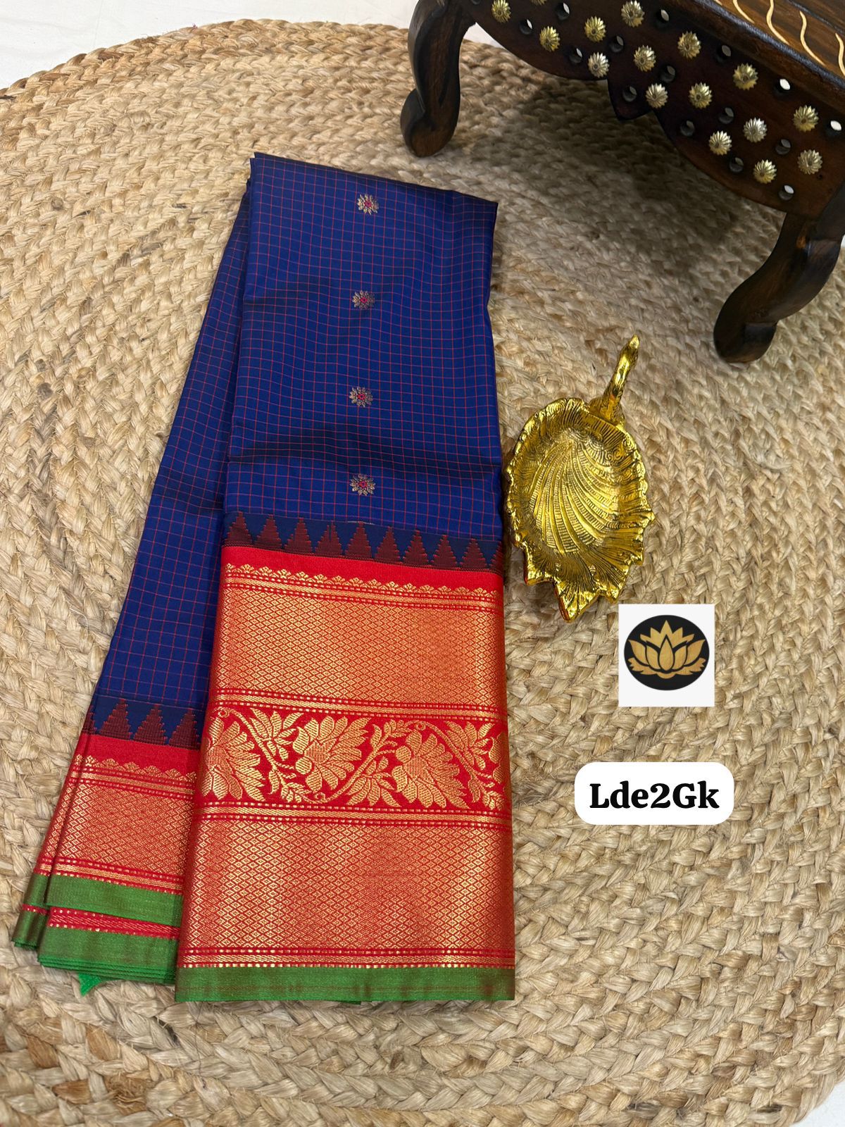 Traditional Gadwal vintage kanchi bigborder semi pattu allover checks n meenakari weaving motifs saree …Rich weaving pallu n blouse 🥰