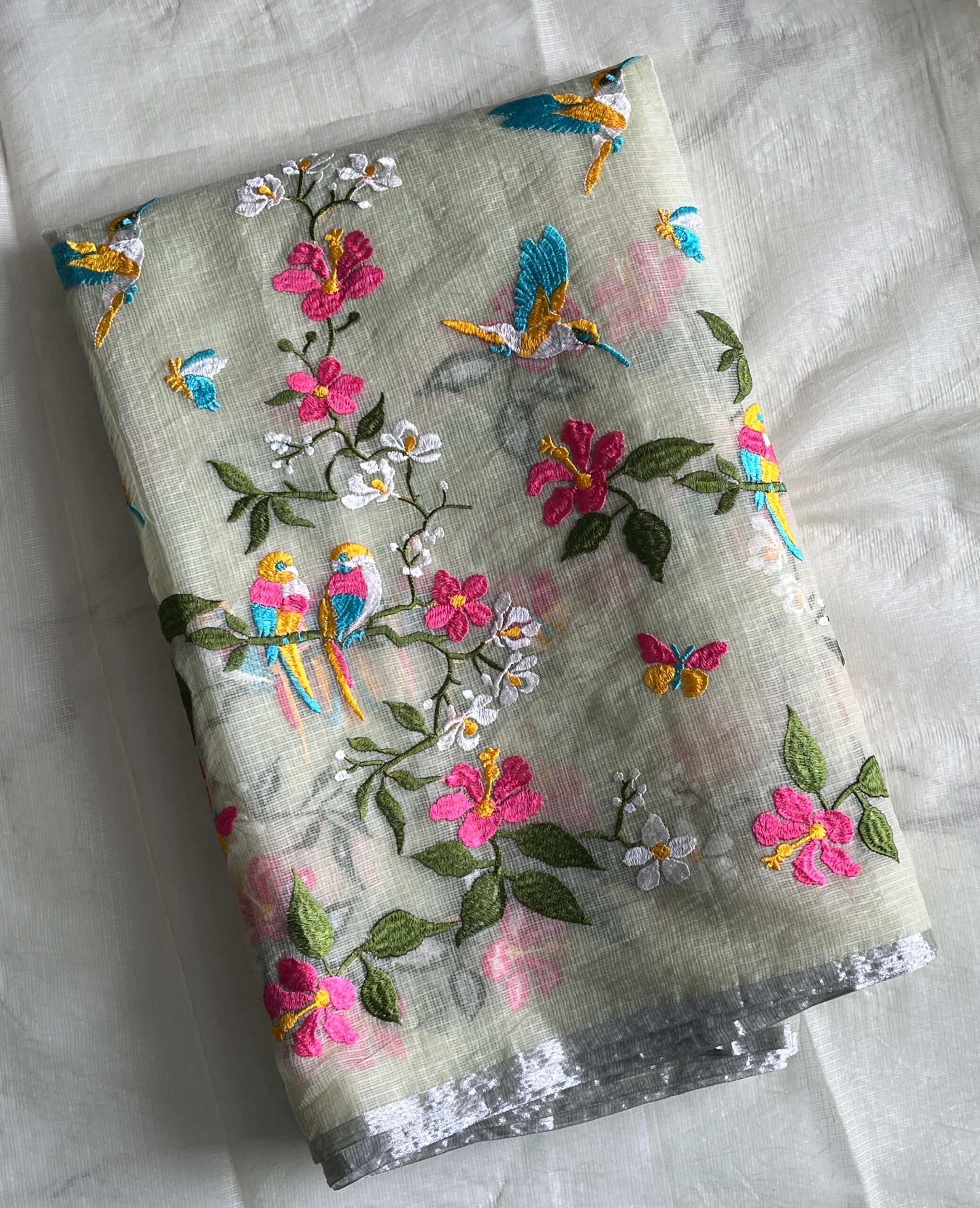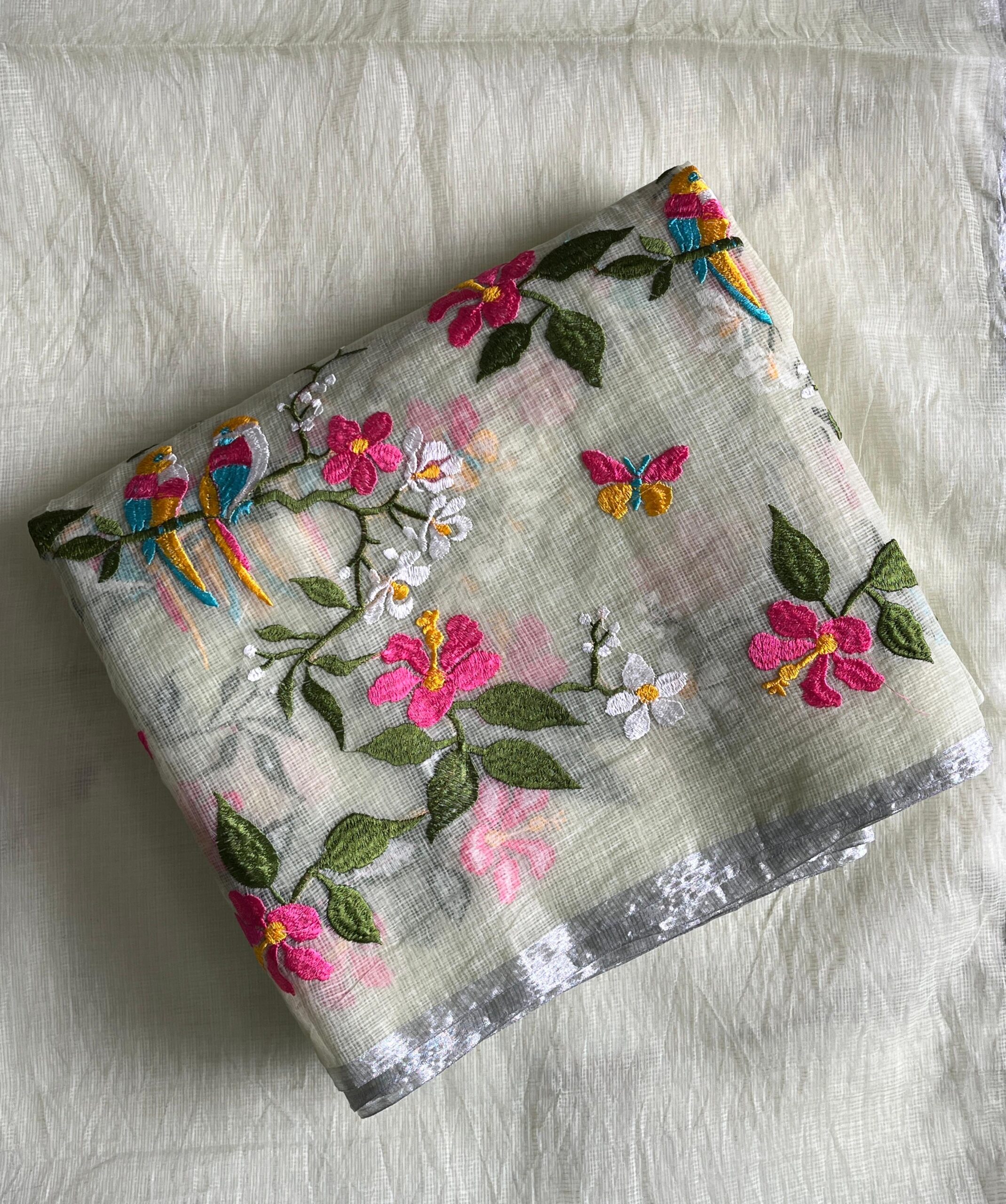 Silver Zari border on either side