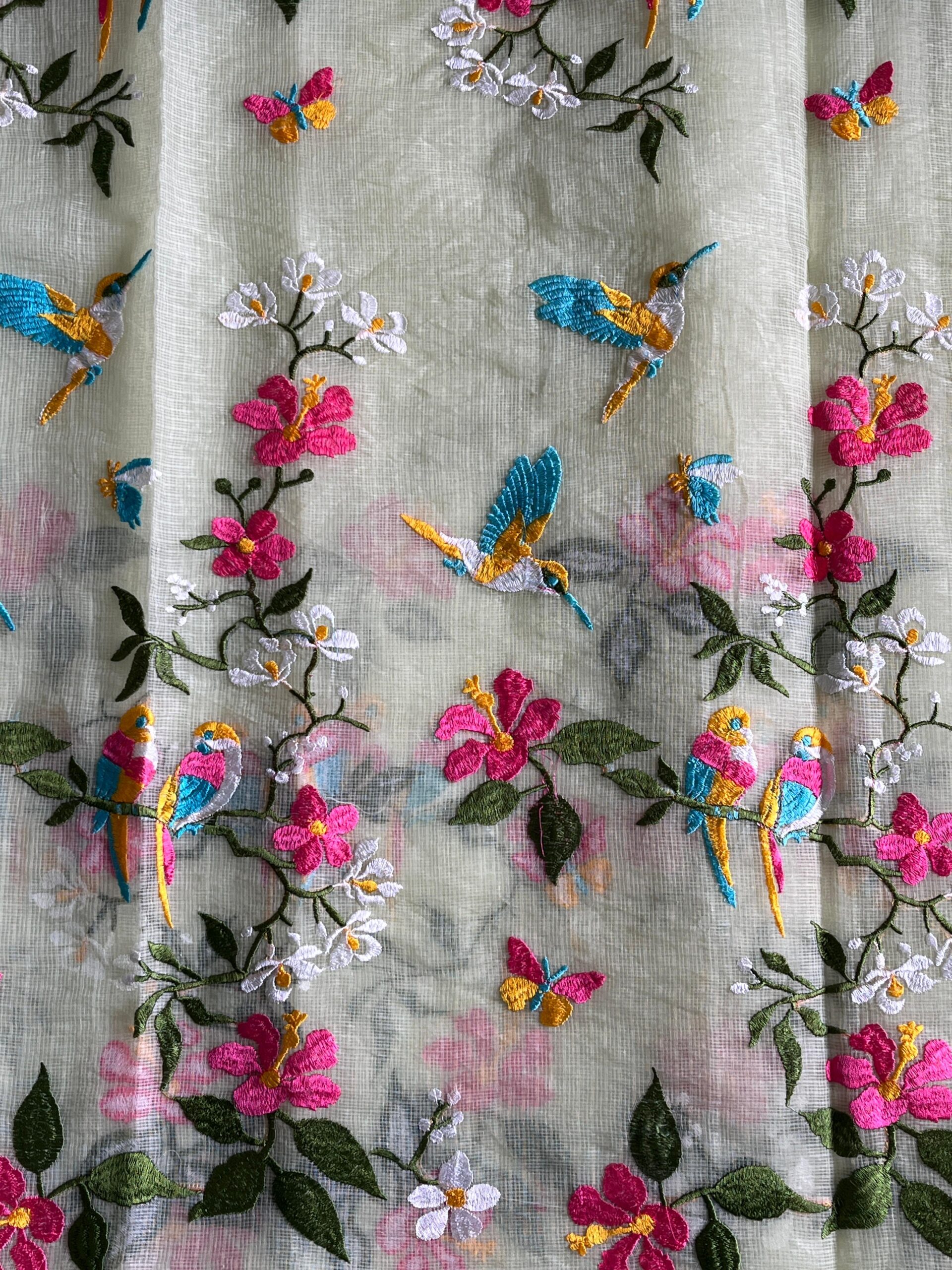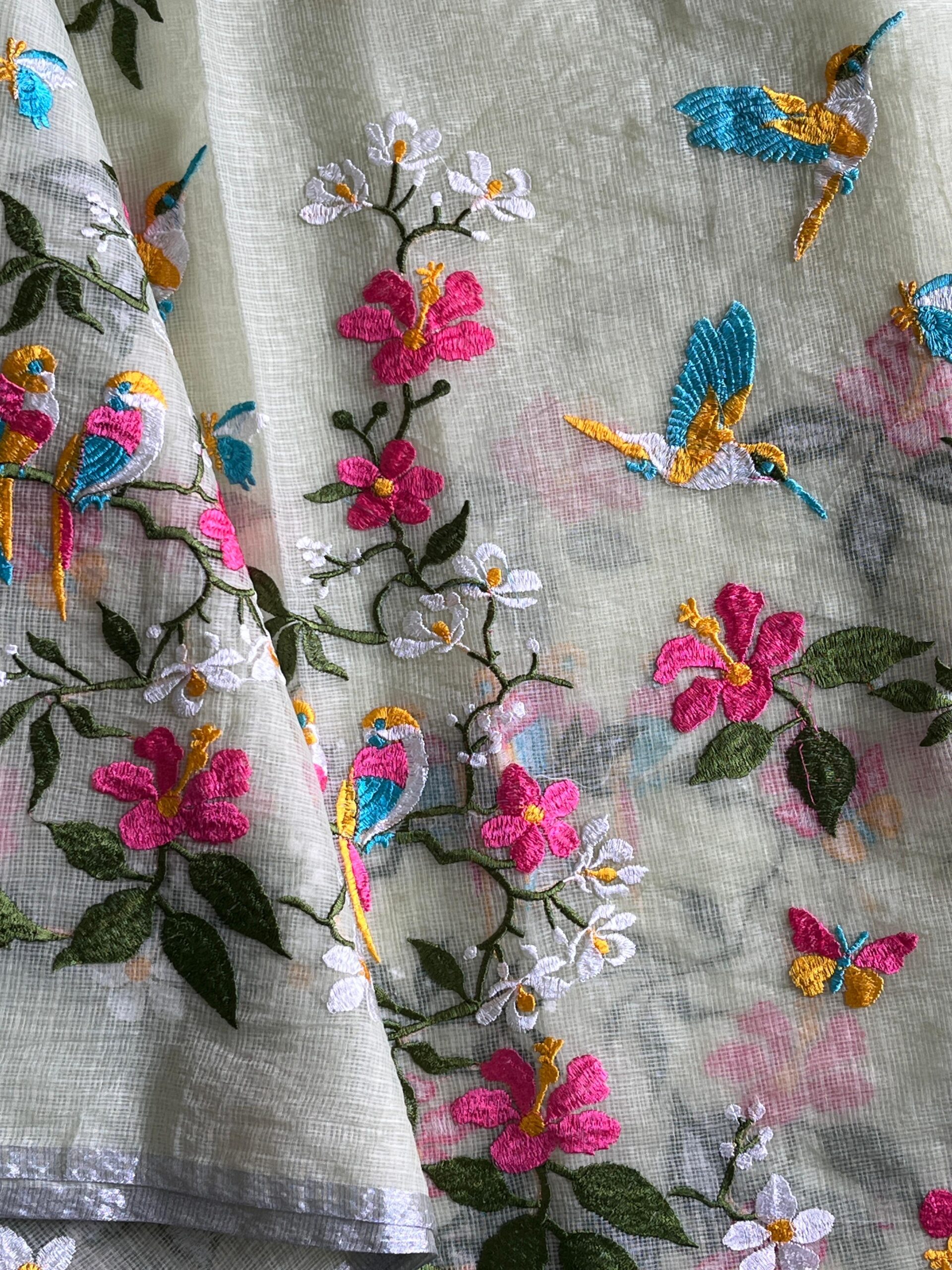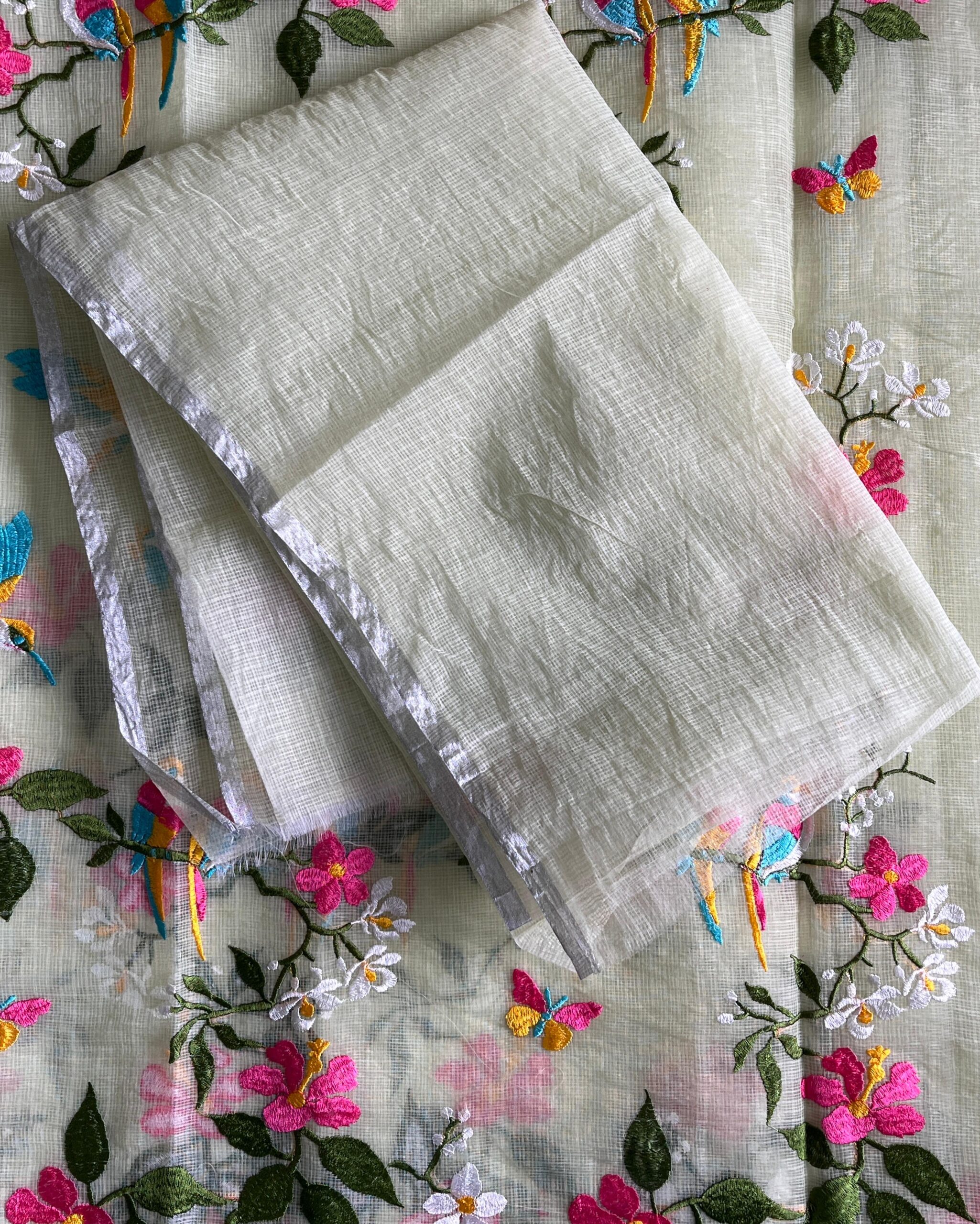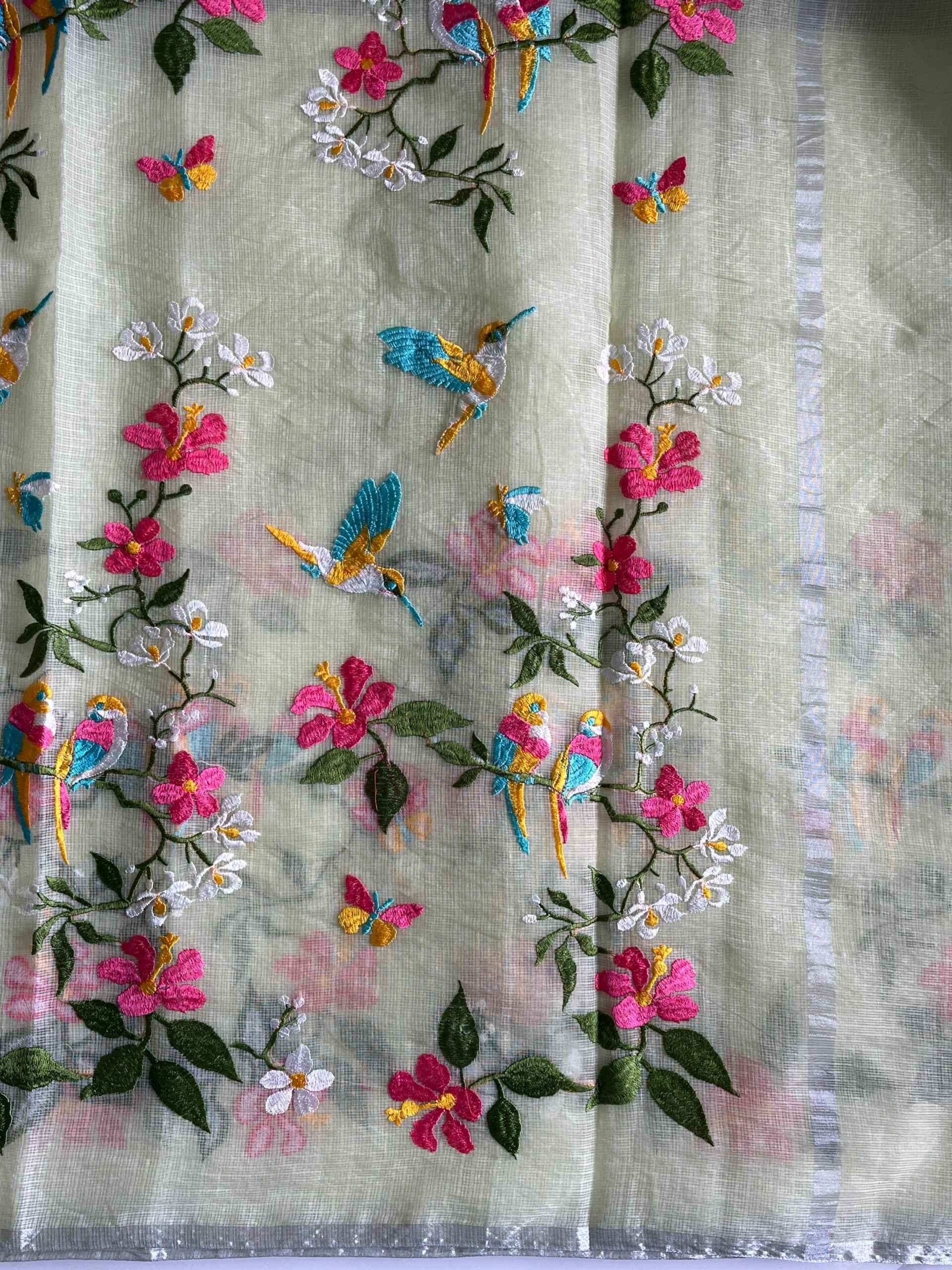 Premium Pure Kota Doriya Saree with beautiful embroidery work on all over the saree