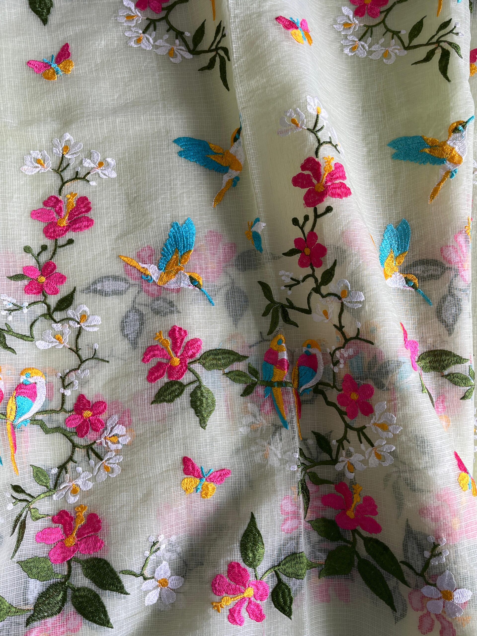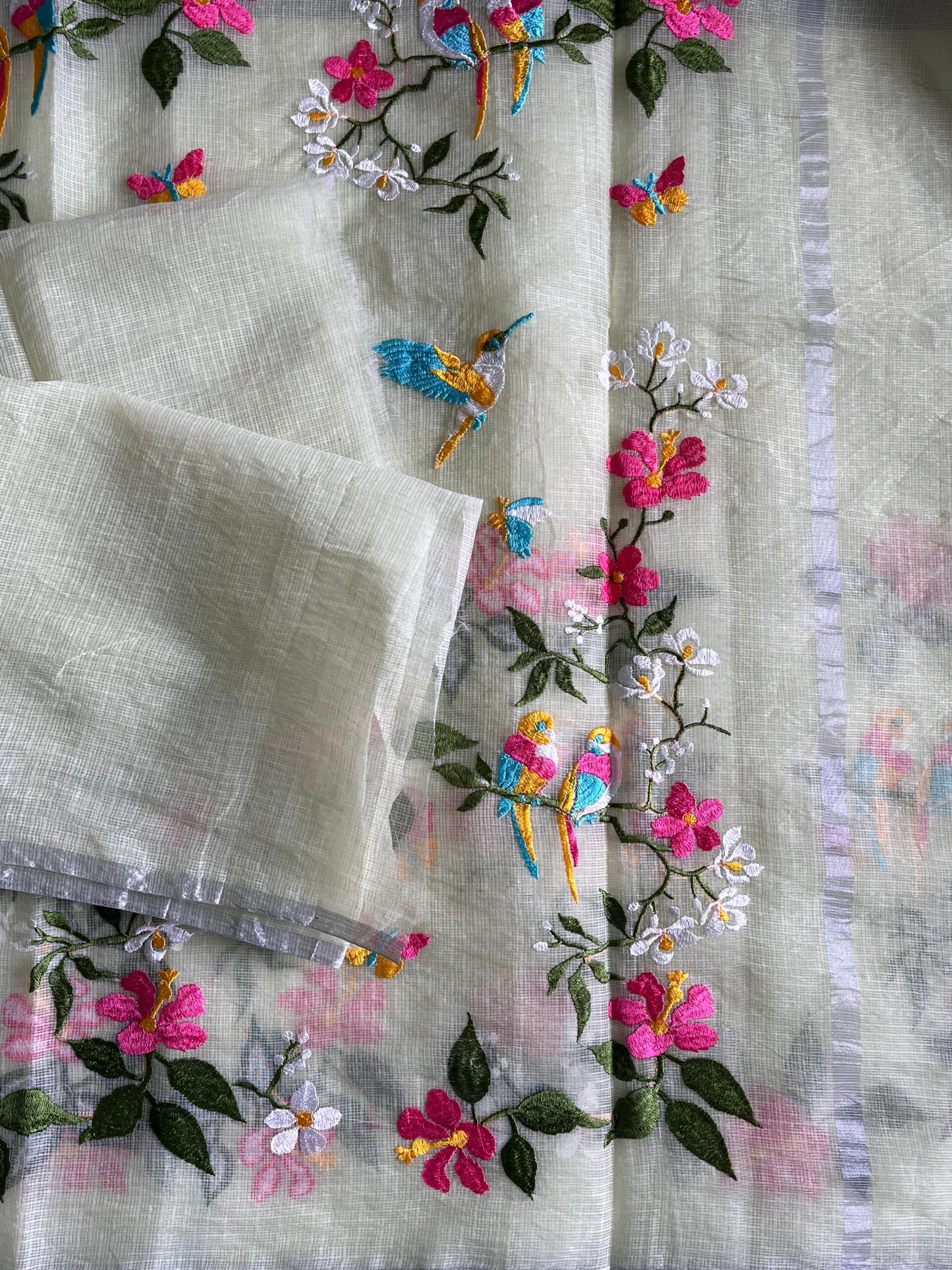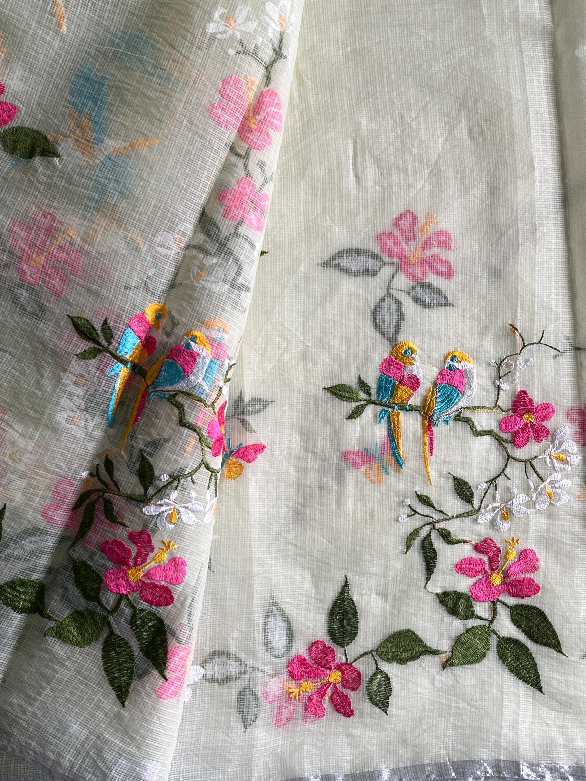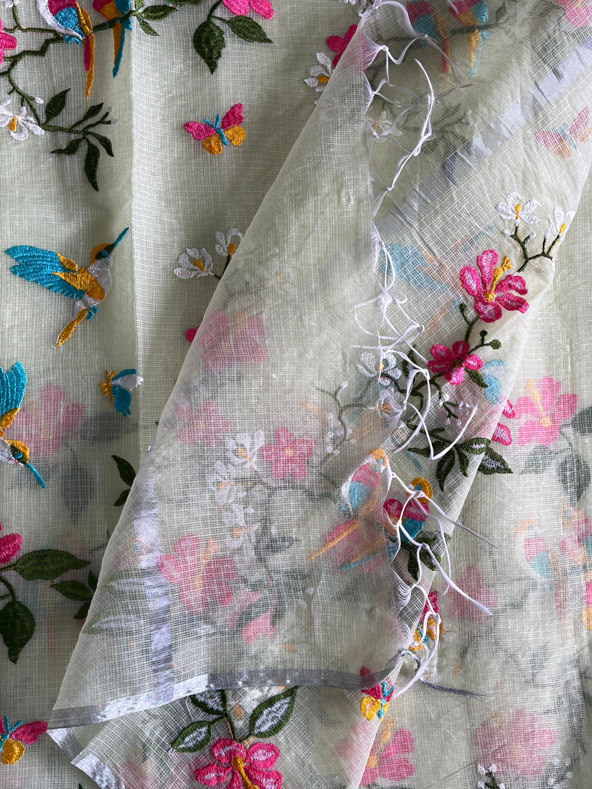 Premium Pure Kota Doriya Saree with beautiful embroidery work on all over the saree