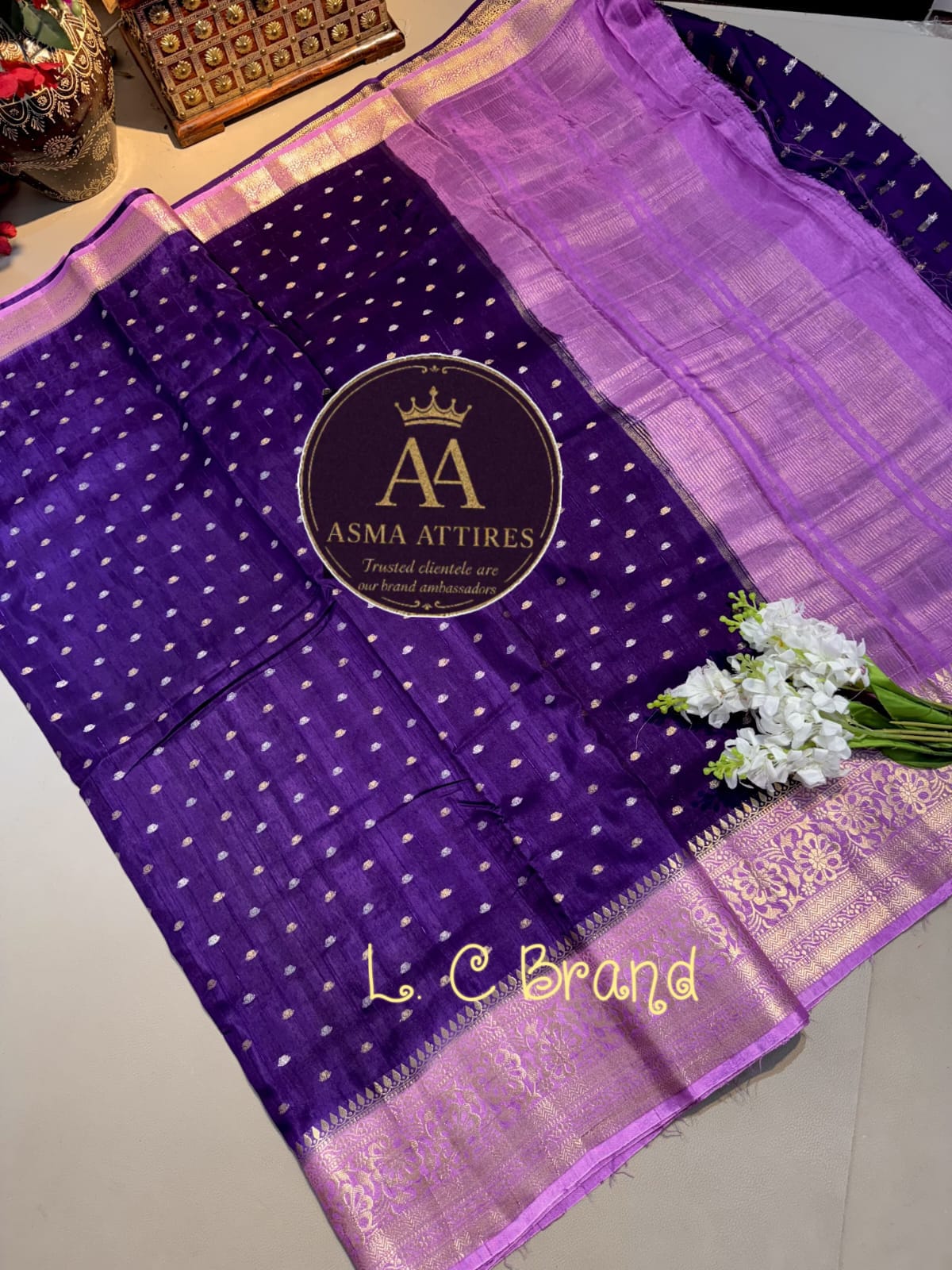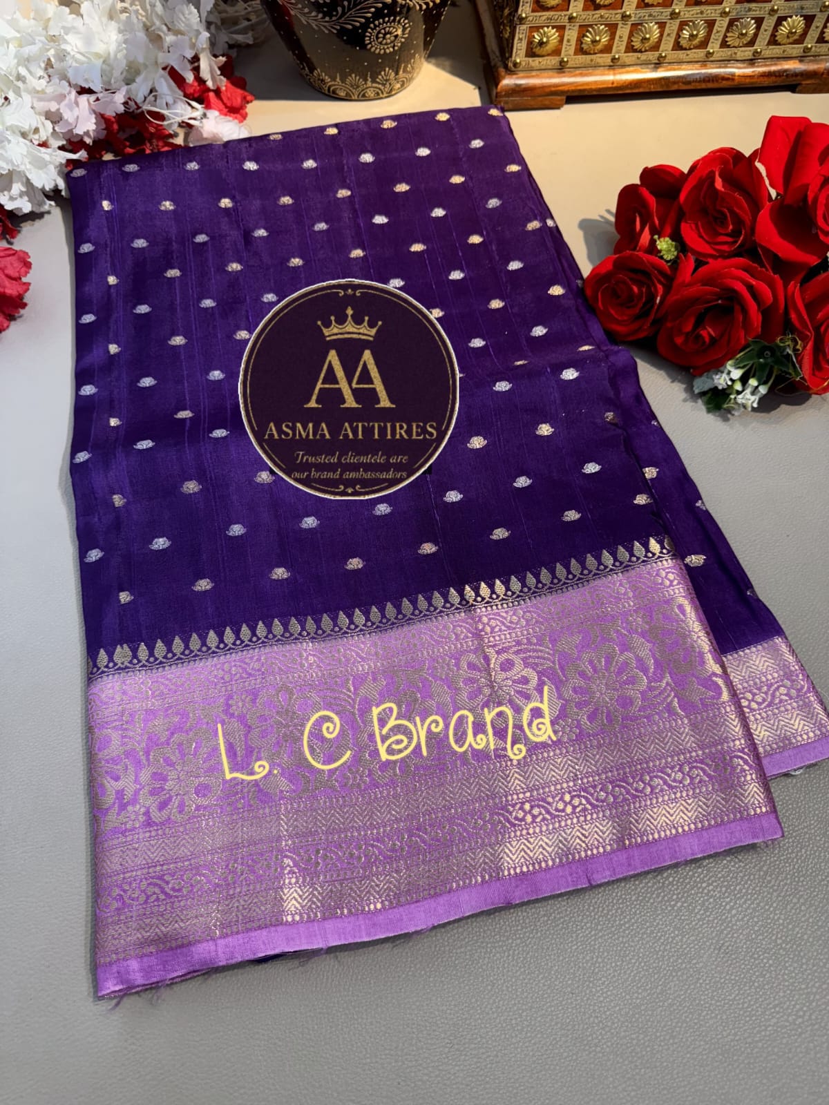 🩸Pure Baneras Rw Mango Saree… Buttis all over.. Weaving Border…