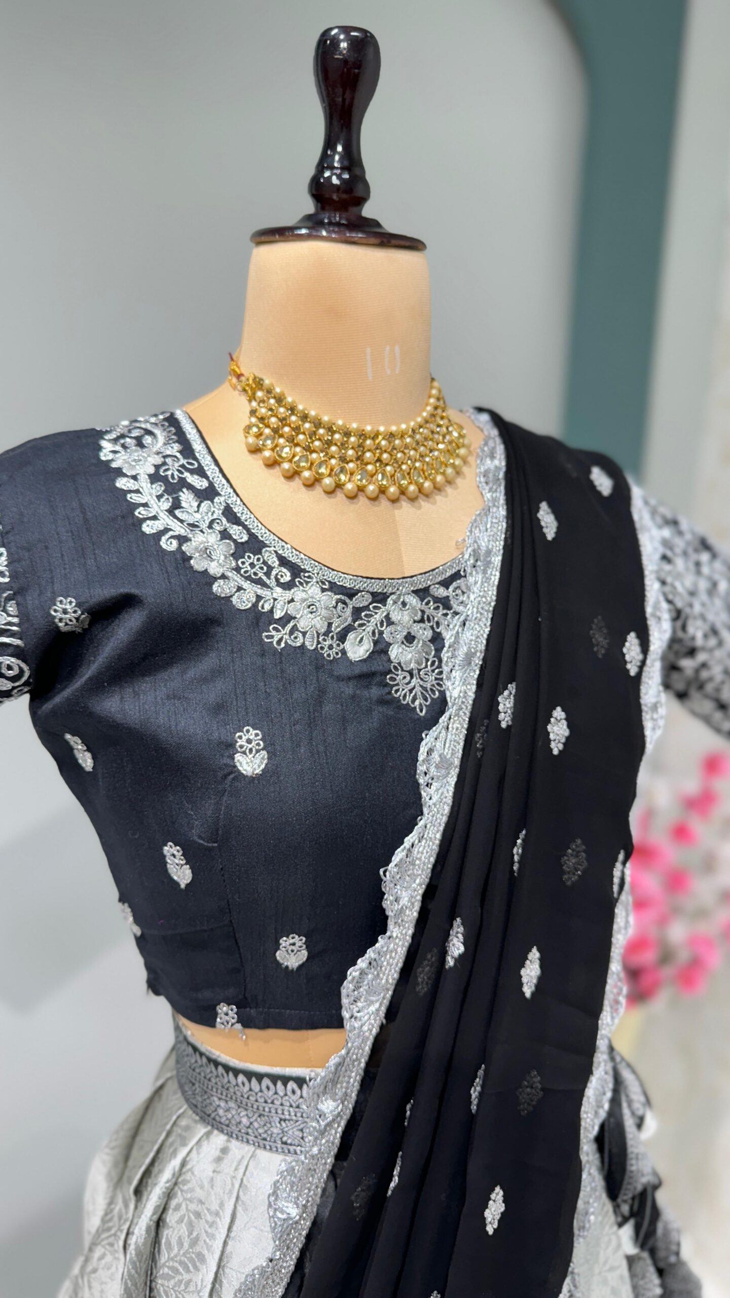 Lehanga Details:- Full stiched Kanjivaram silk With big jequard Border attached with Canvas patta zip and Latkan