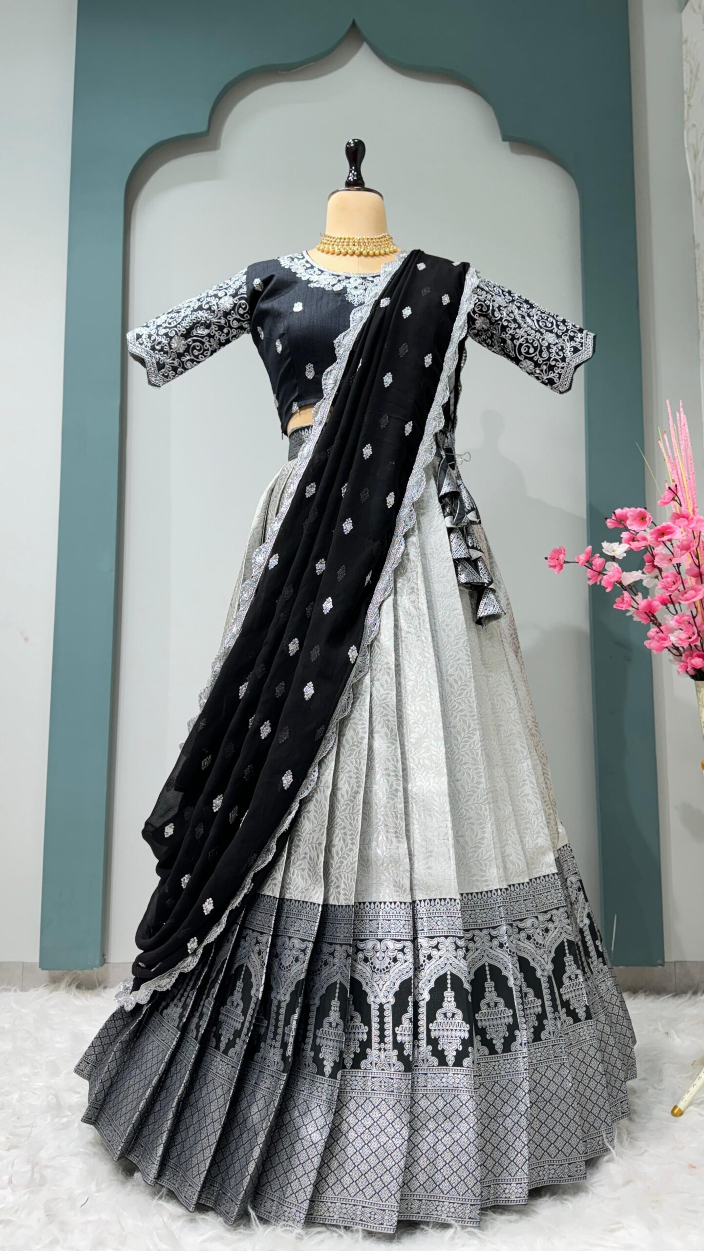 Launch New Exclusive Designer Premium Quality Pure Kanjivaram silk full stiched Lehenga With Full stiched Designer Maggam work blouse With Maggam work with Rich butti work with Handwork lace border dupatta which gives u totally Decent and Extraordinary look For this Festival Marriage Season
