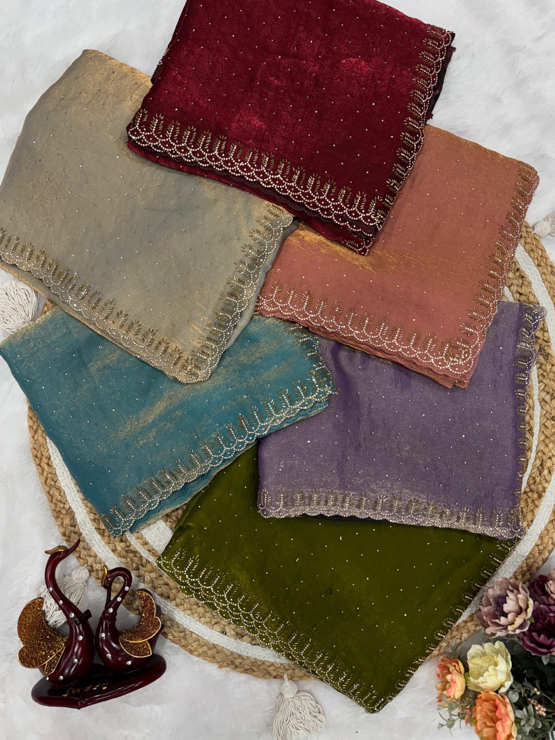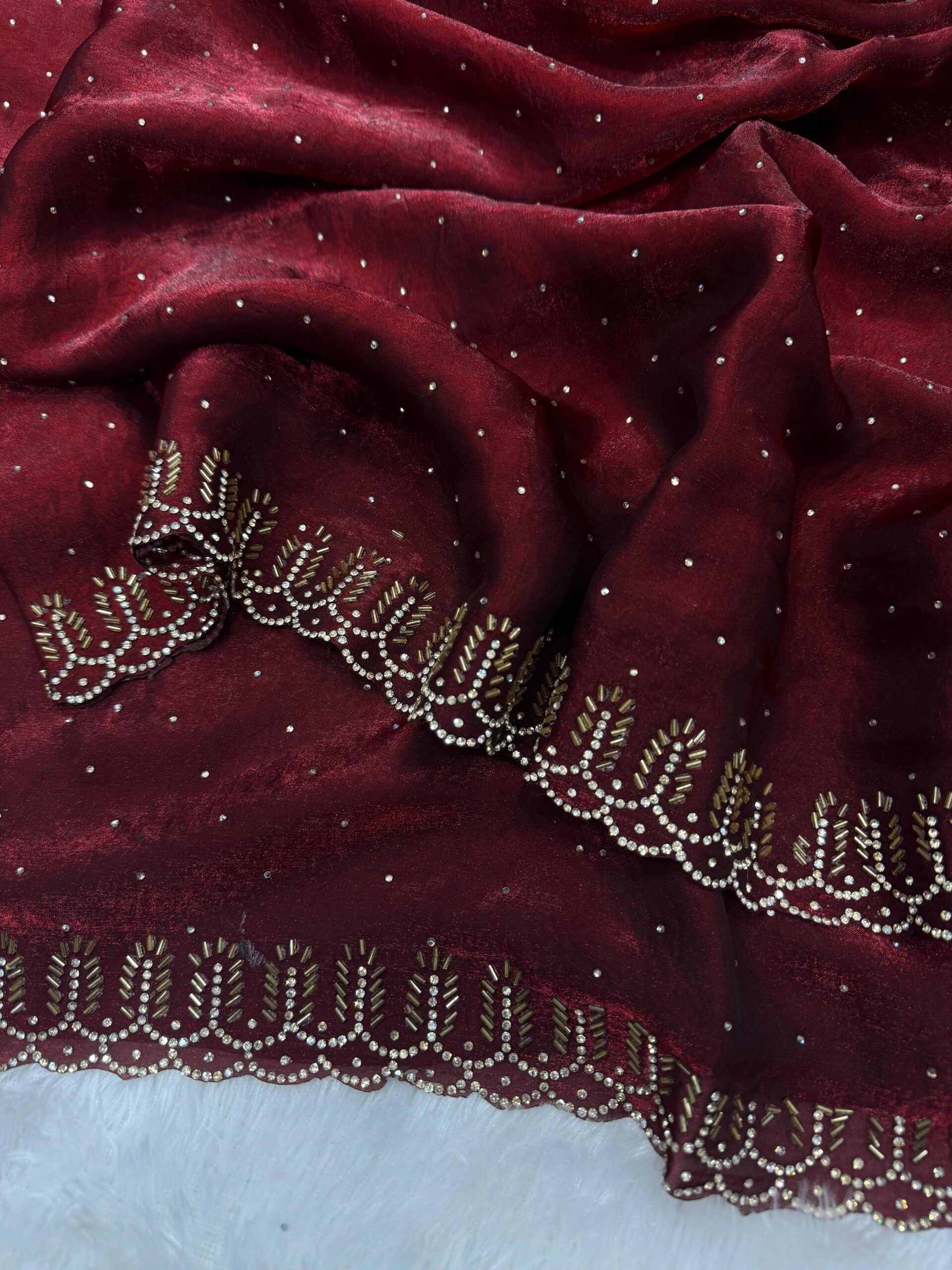 *⭕ WORK :* Original Jarkhan Diamond work in saree