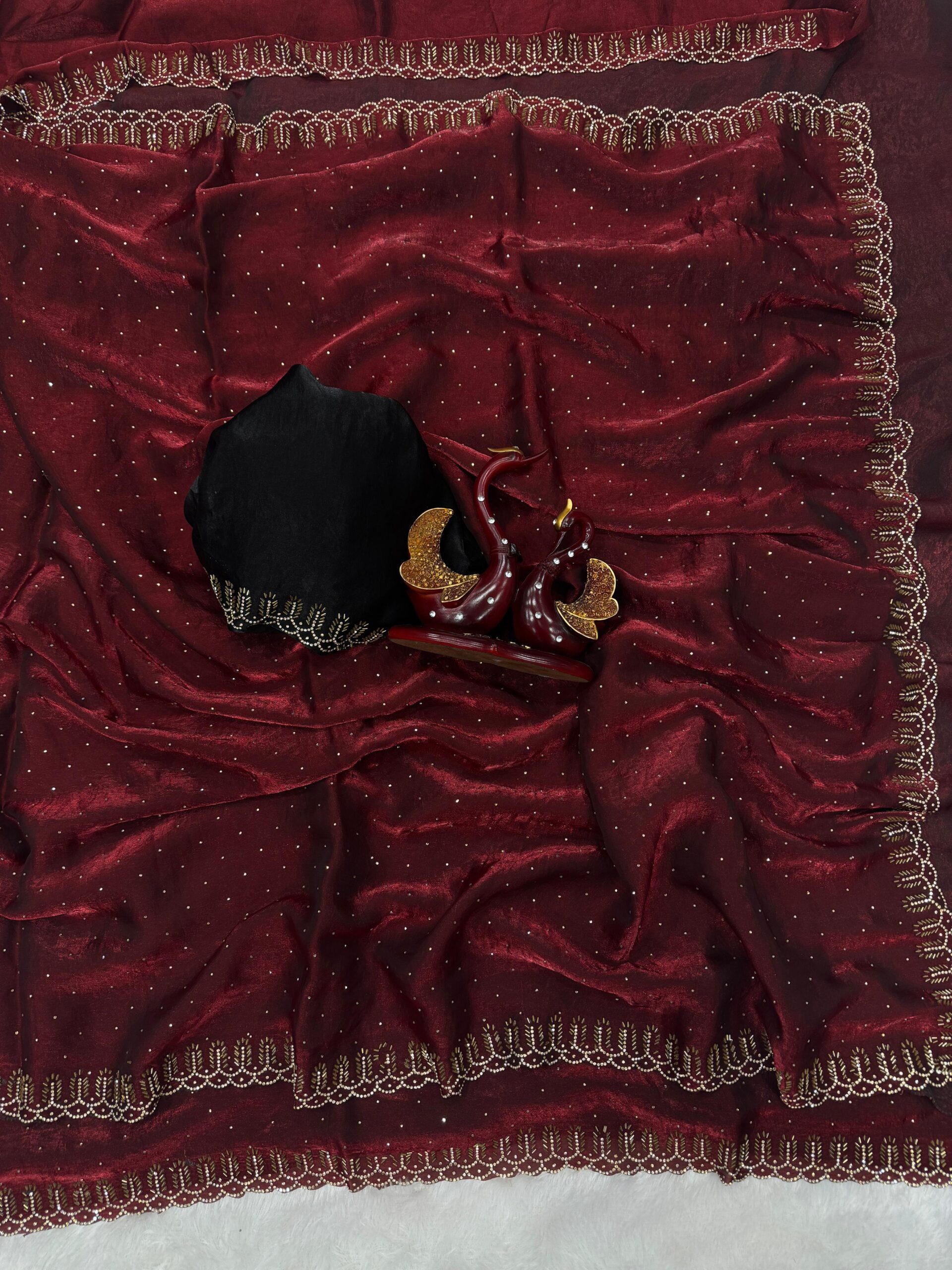 *⭕ BLOUSE*- Beautiful Jarkhan Diamond work in Space Silk Fabric