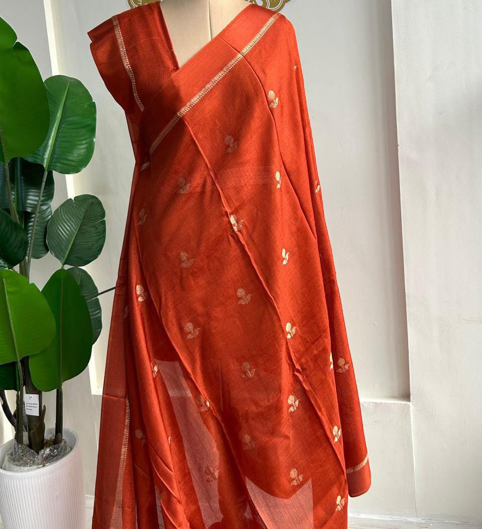 Be the first to review “Pure soft Viscose Khadi silk fabric with satin border both side jacquard leaf figure design all over with running blouse”