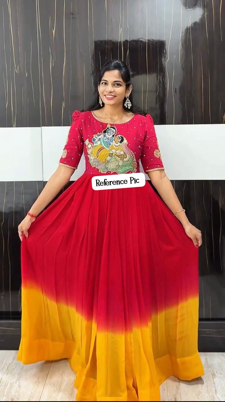 *Top Trending Dussera Collection. Beautiful Radhe Krishana Printed Maggam Work Gown. A touch of glamour and elegance to your look For Festive Season.*