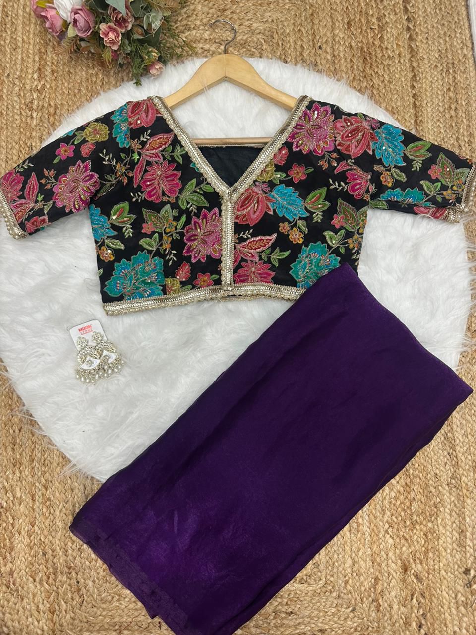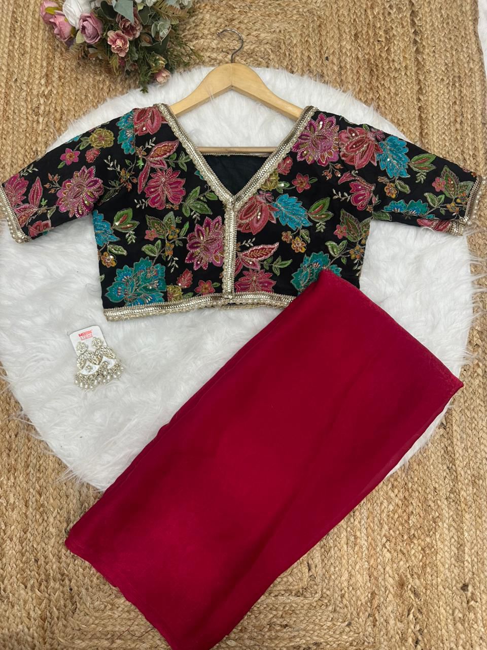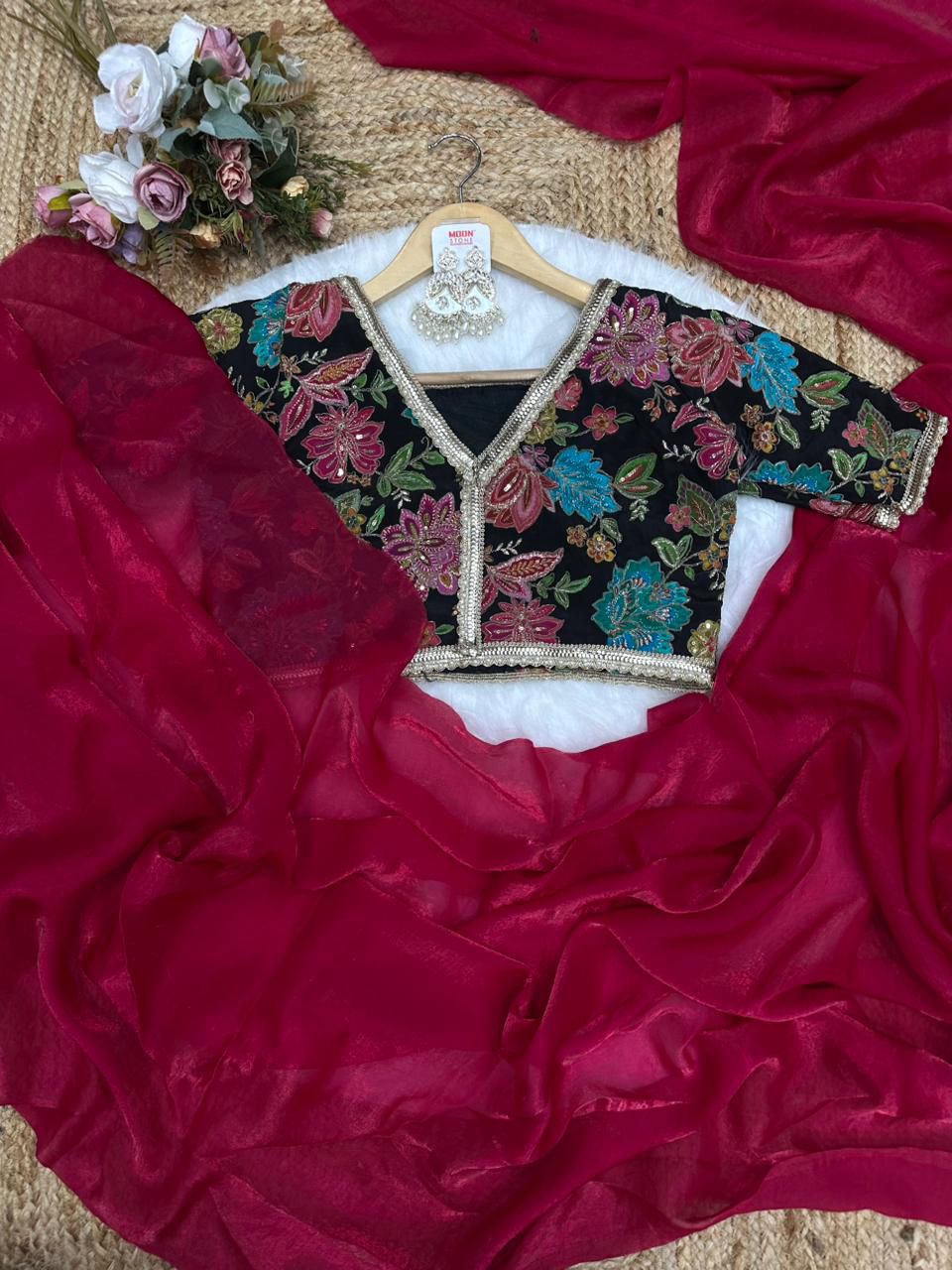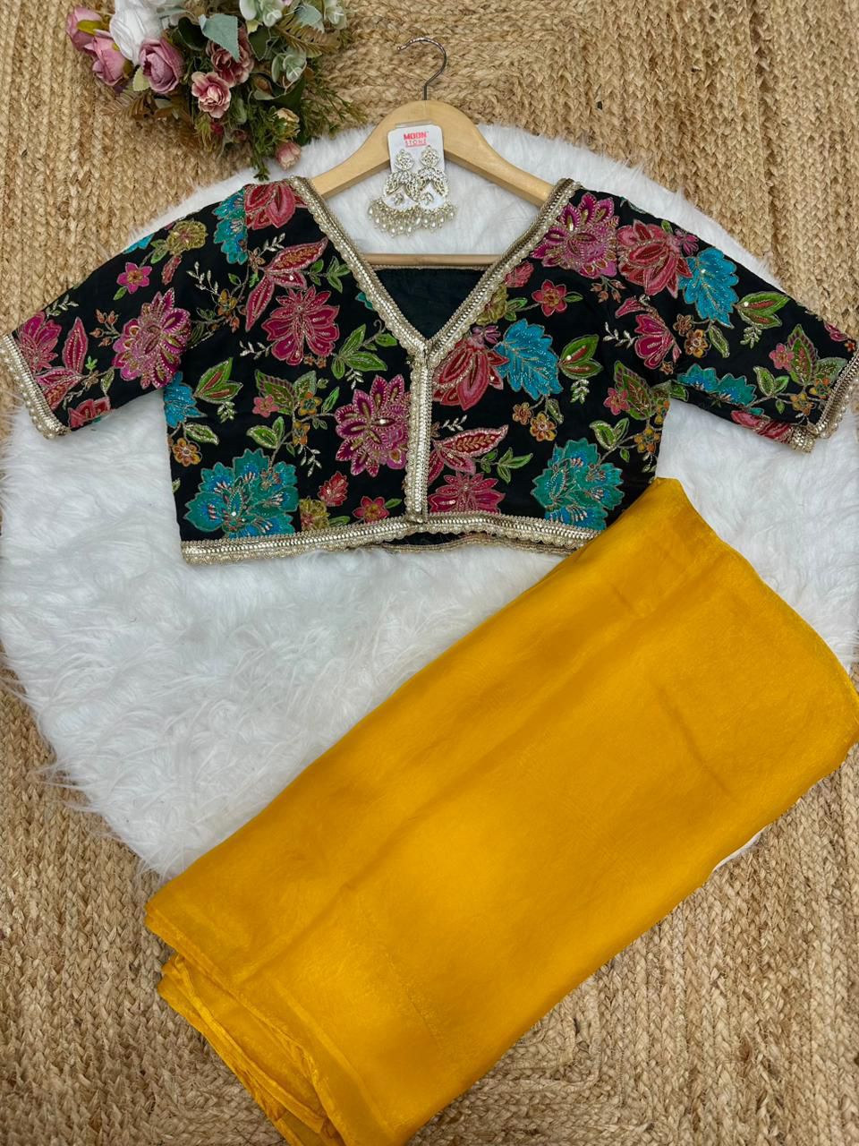 Blouse febric:- pure soft viscos with position print flowers design and embroidery outing blouse (unstich)