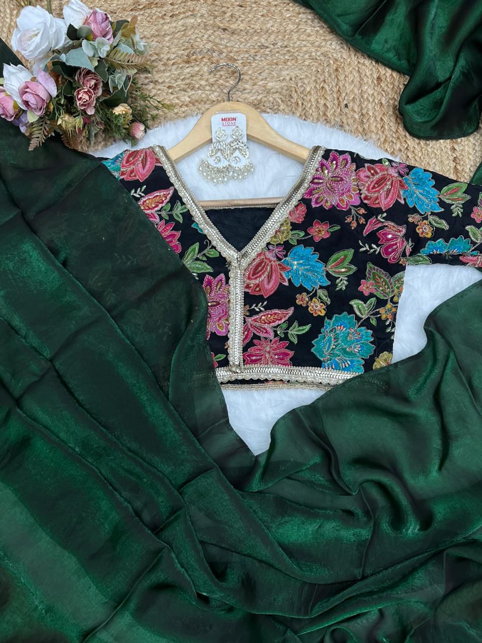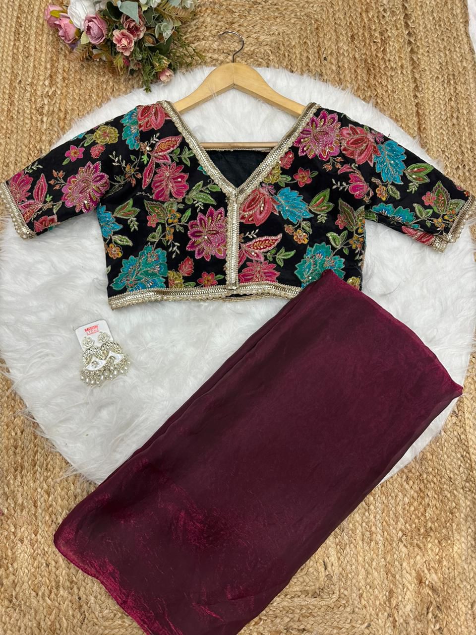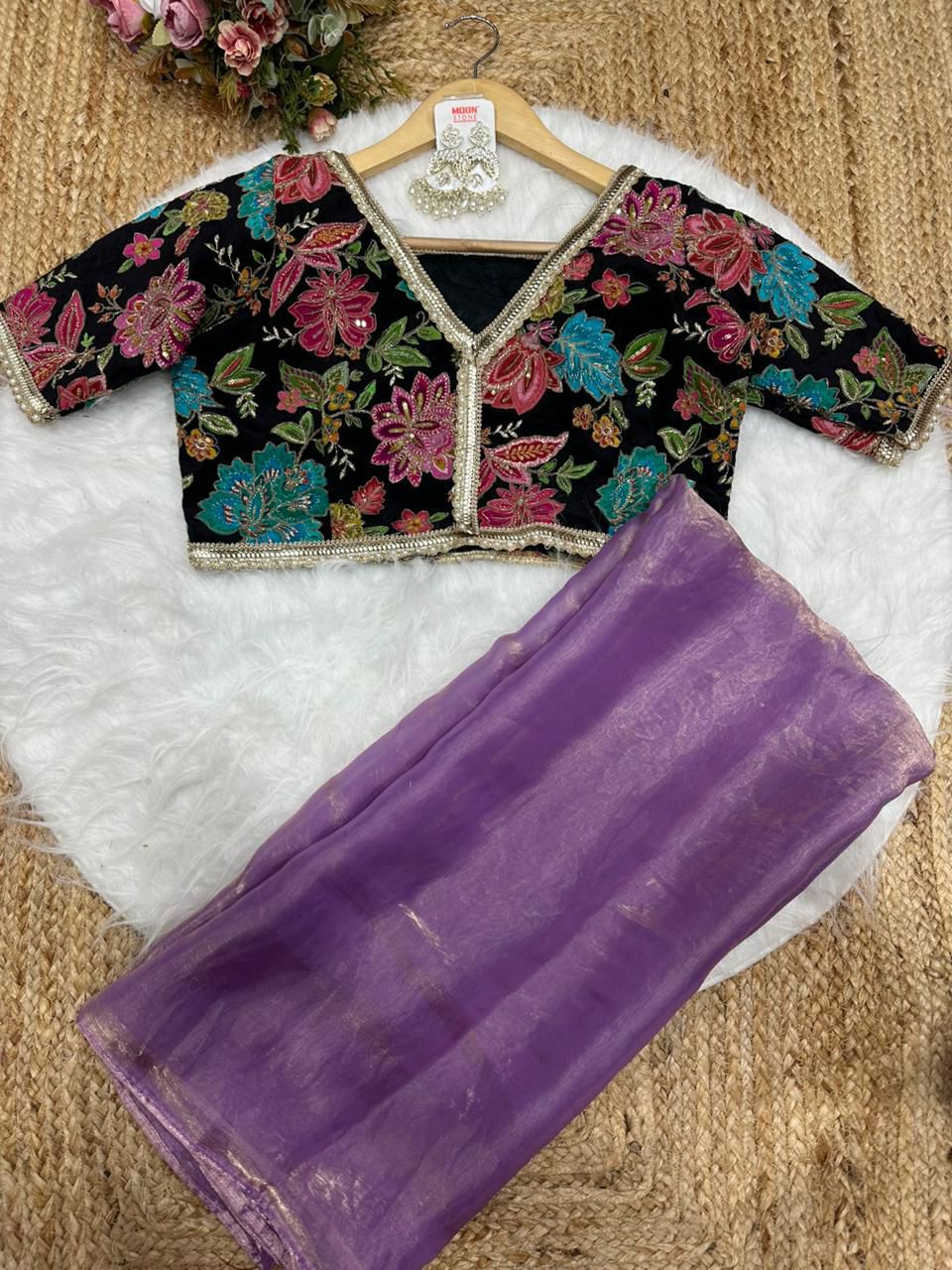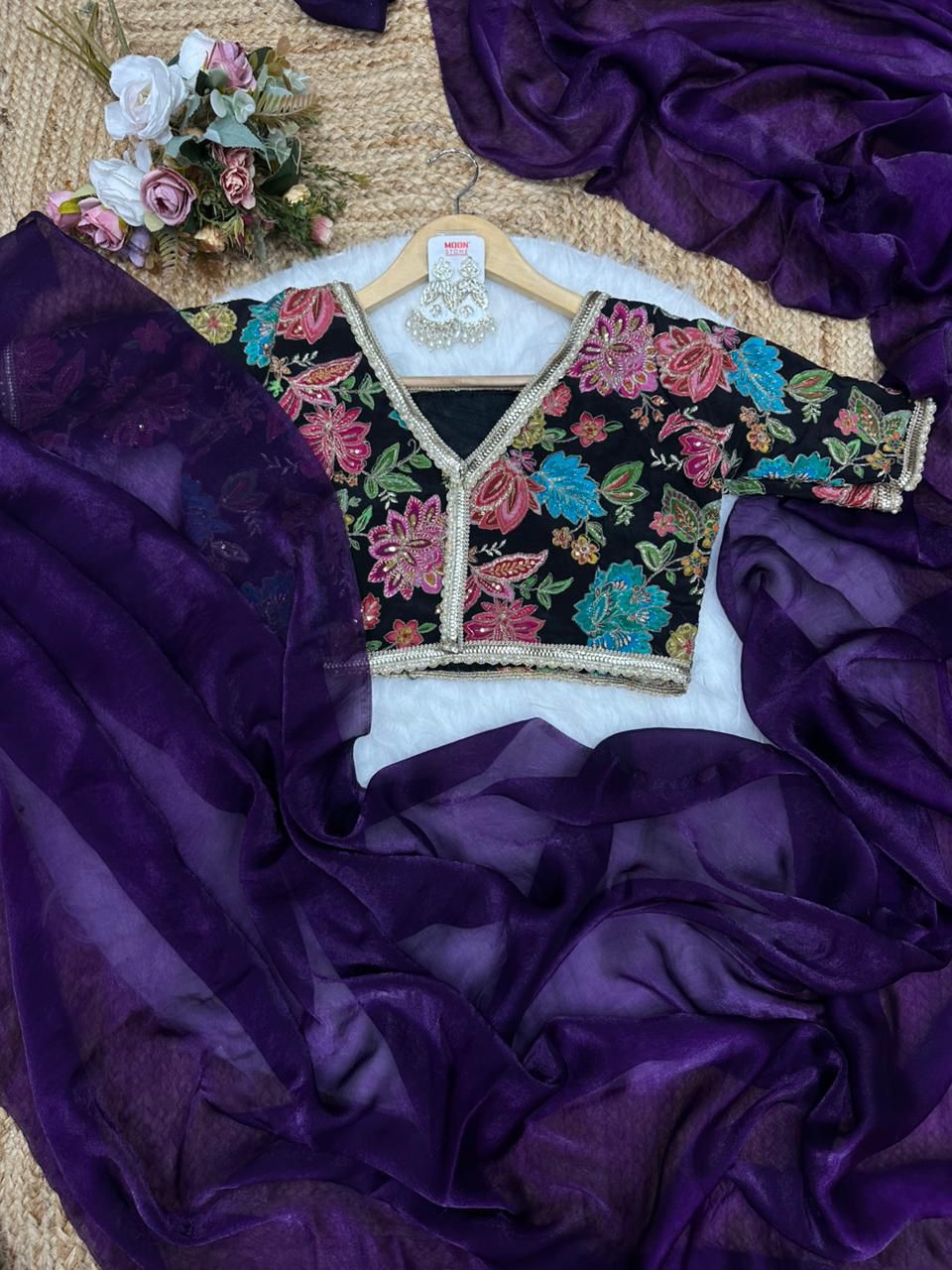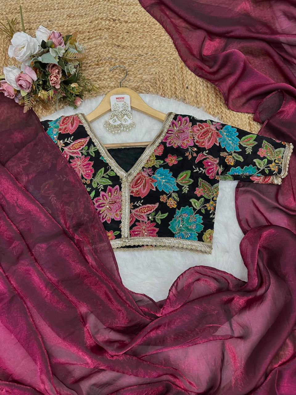 Blouse febric:- pure soft viscos with position print flowers design and embroidery outing blouse (unstich)