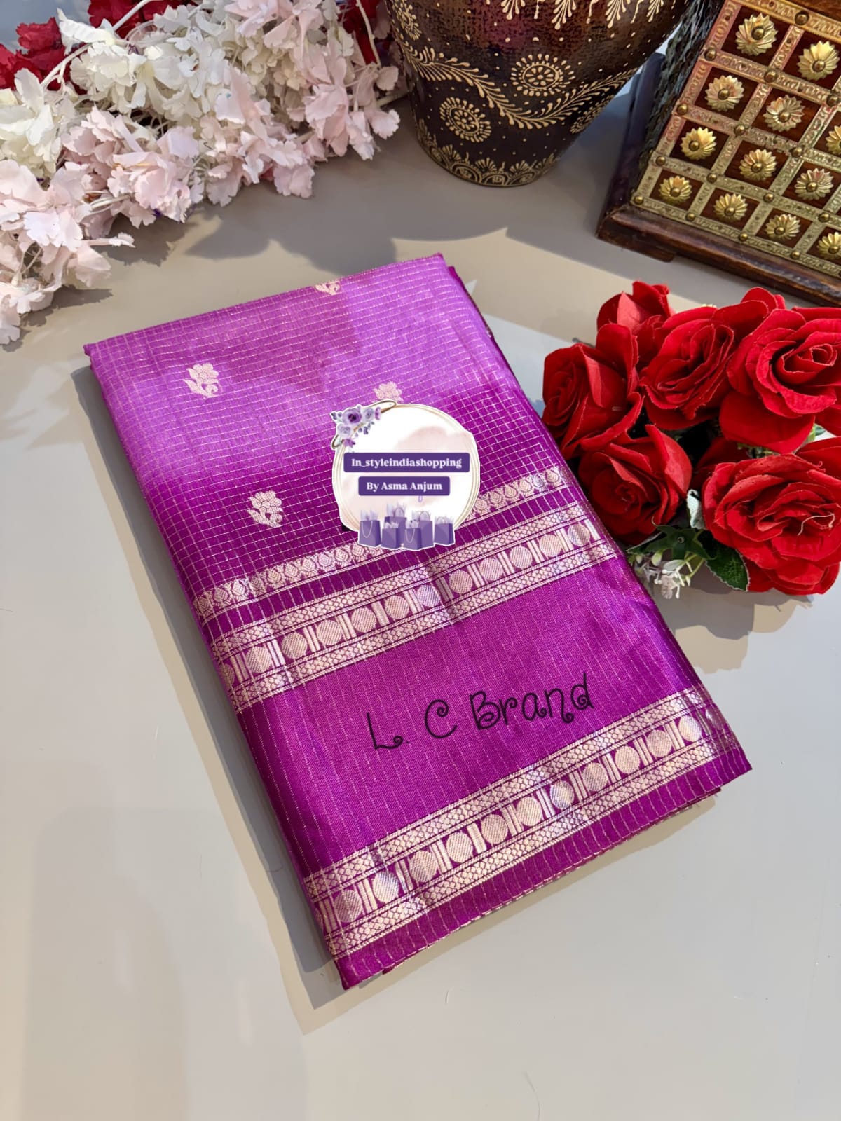 Soft Baneras checks… 2D colors… Buttis all over… Gadwal feel Borders… Pallu & Blouse as shown