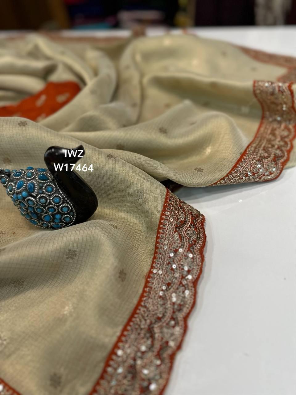 Saree is full of zari weaving looks like tissue saree
