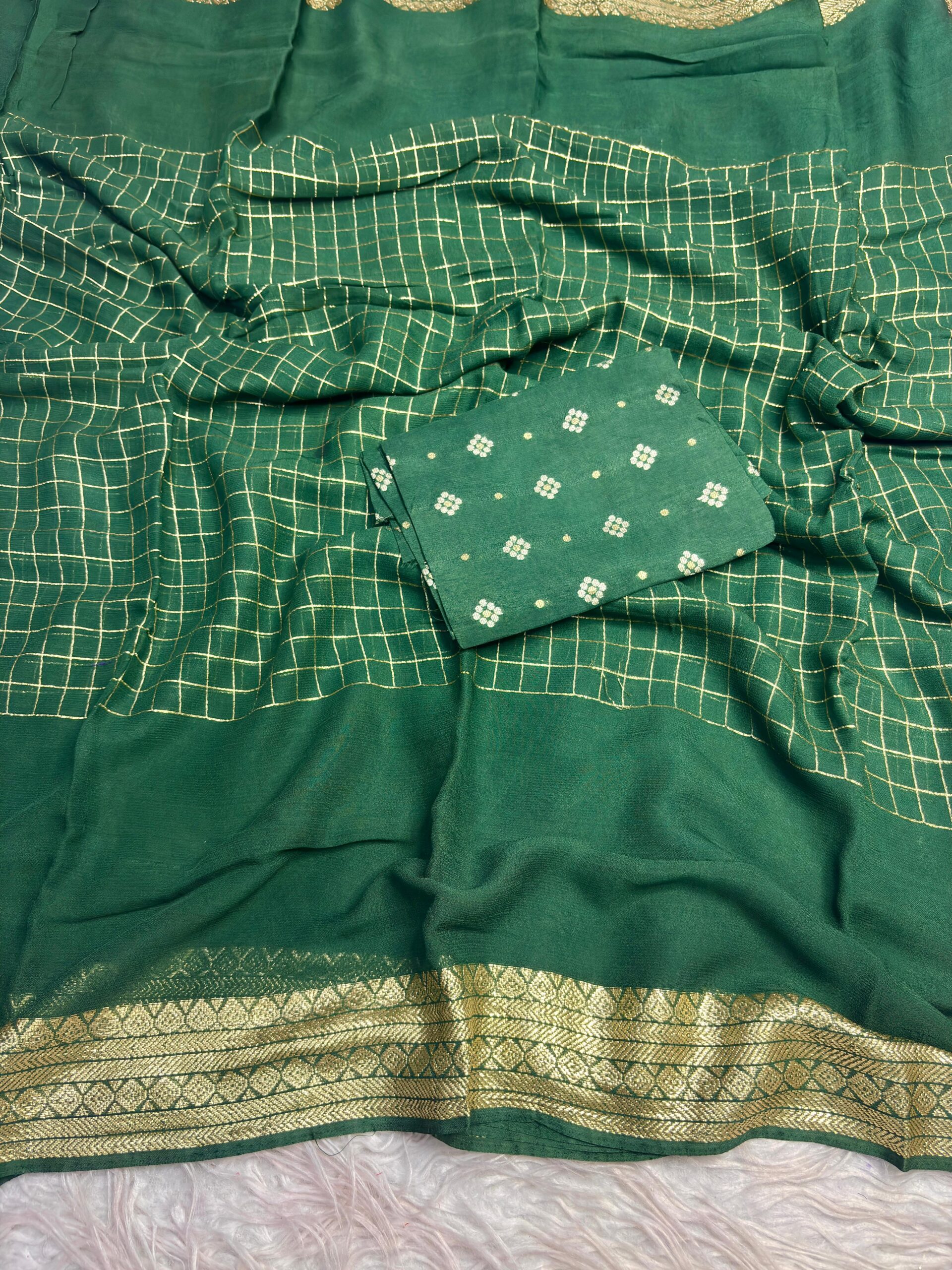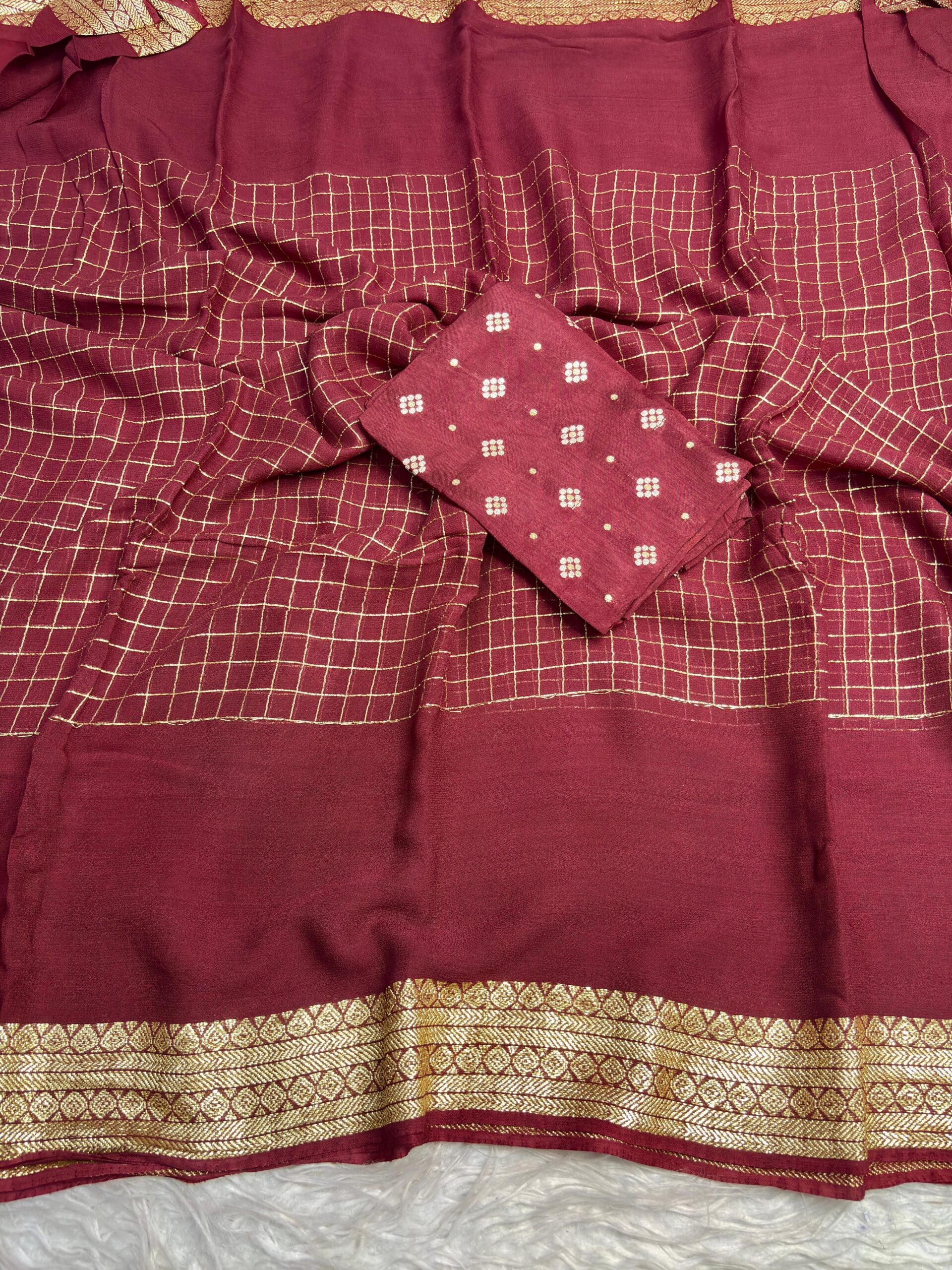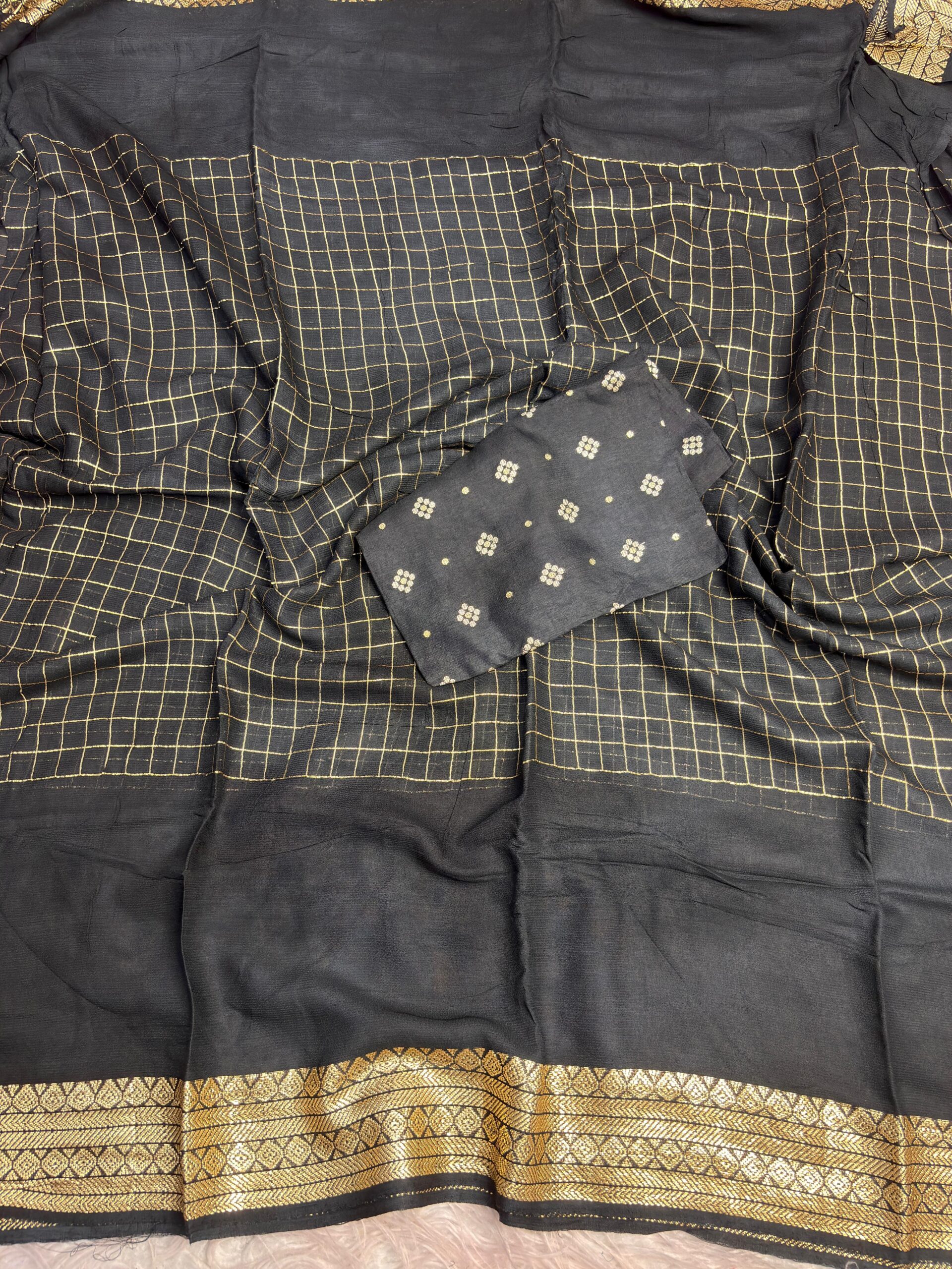 Viscos Georgette with middle Chex and beautiful border ,Viscos butti blouse