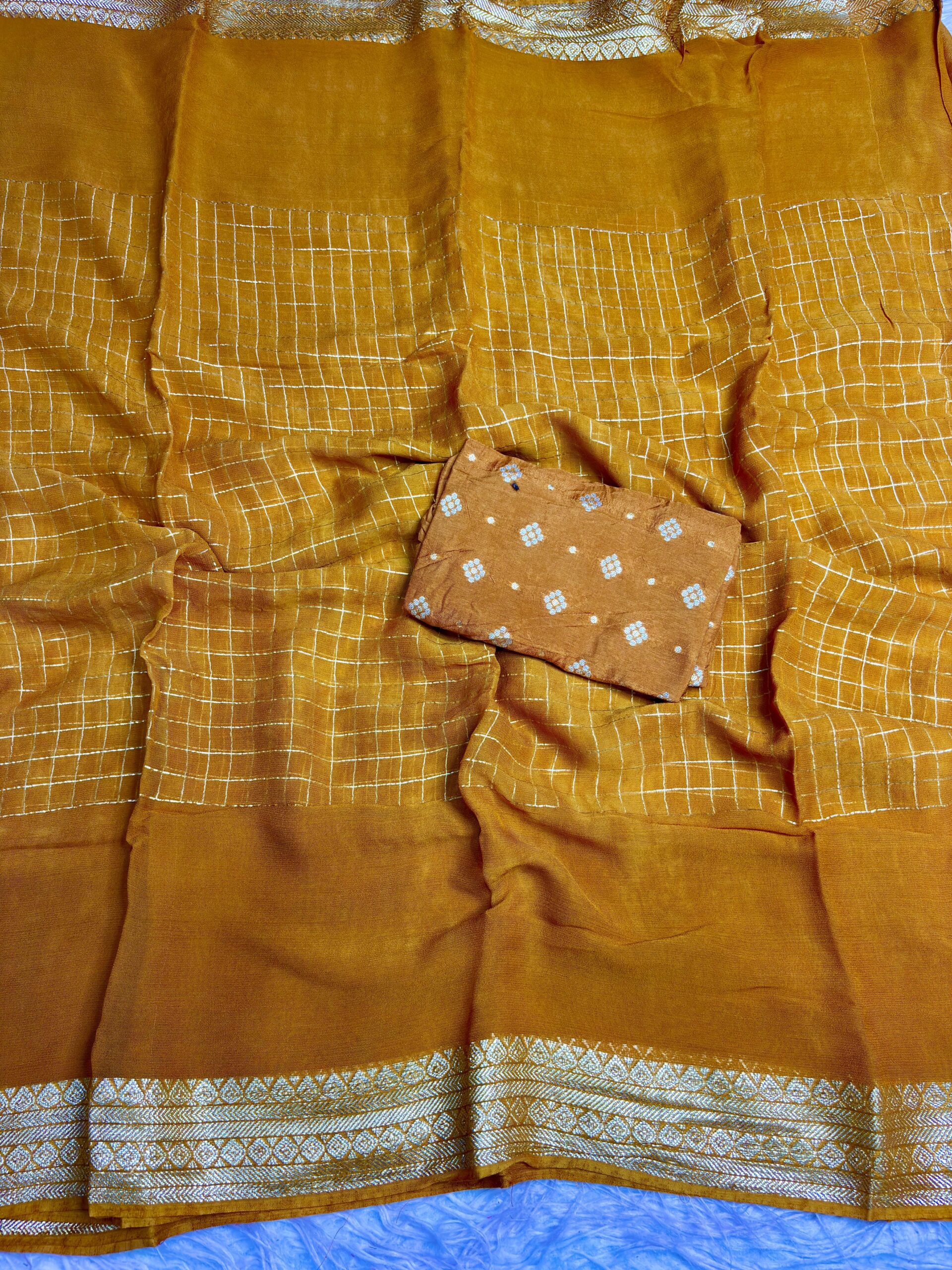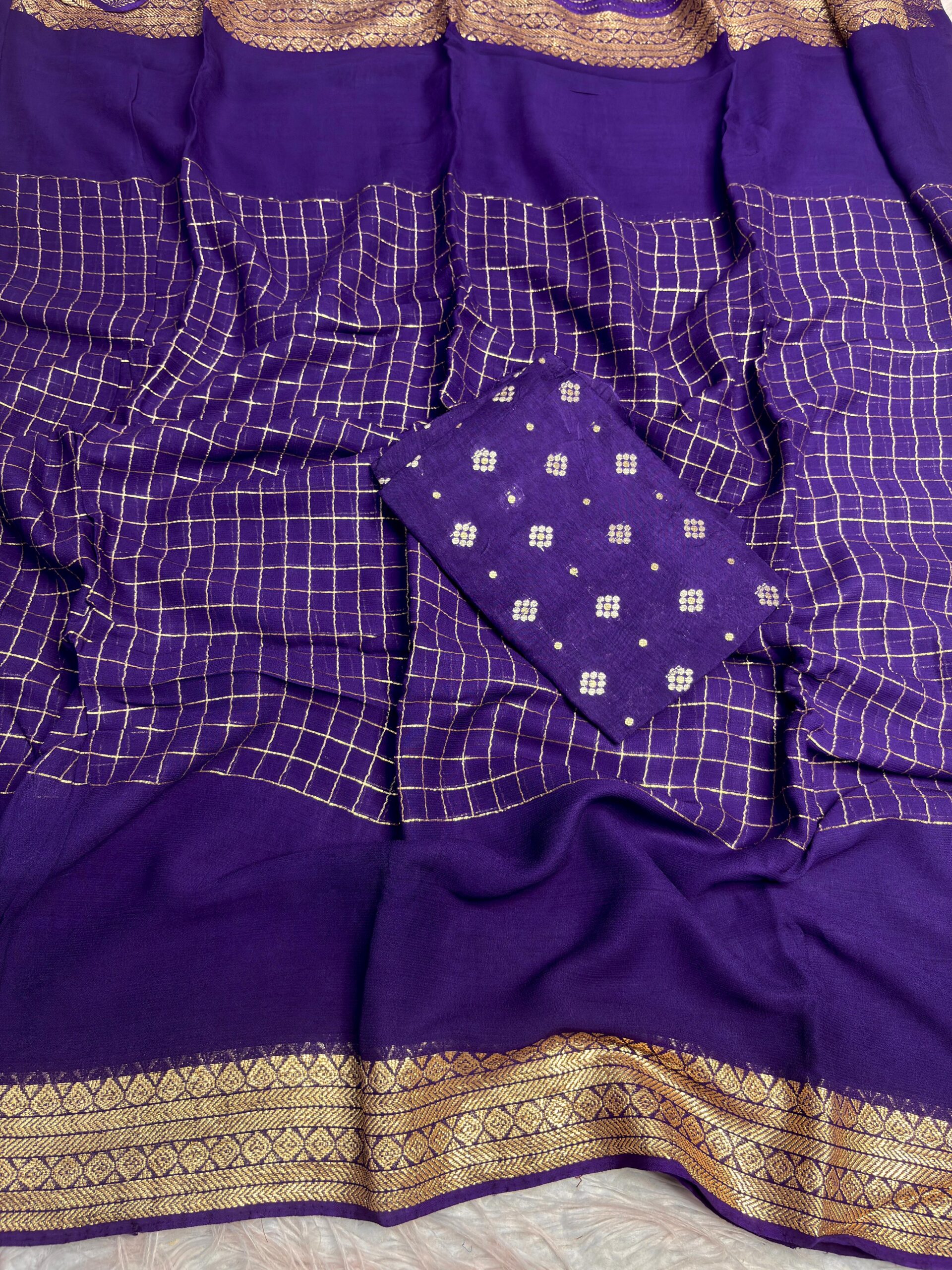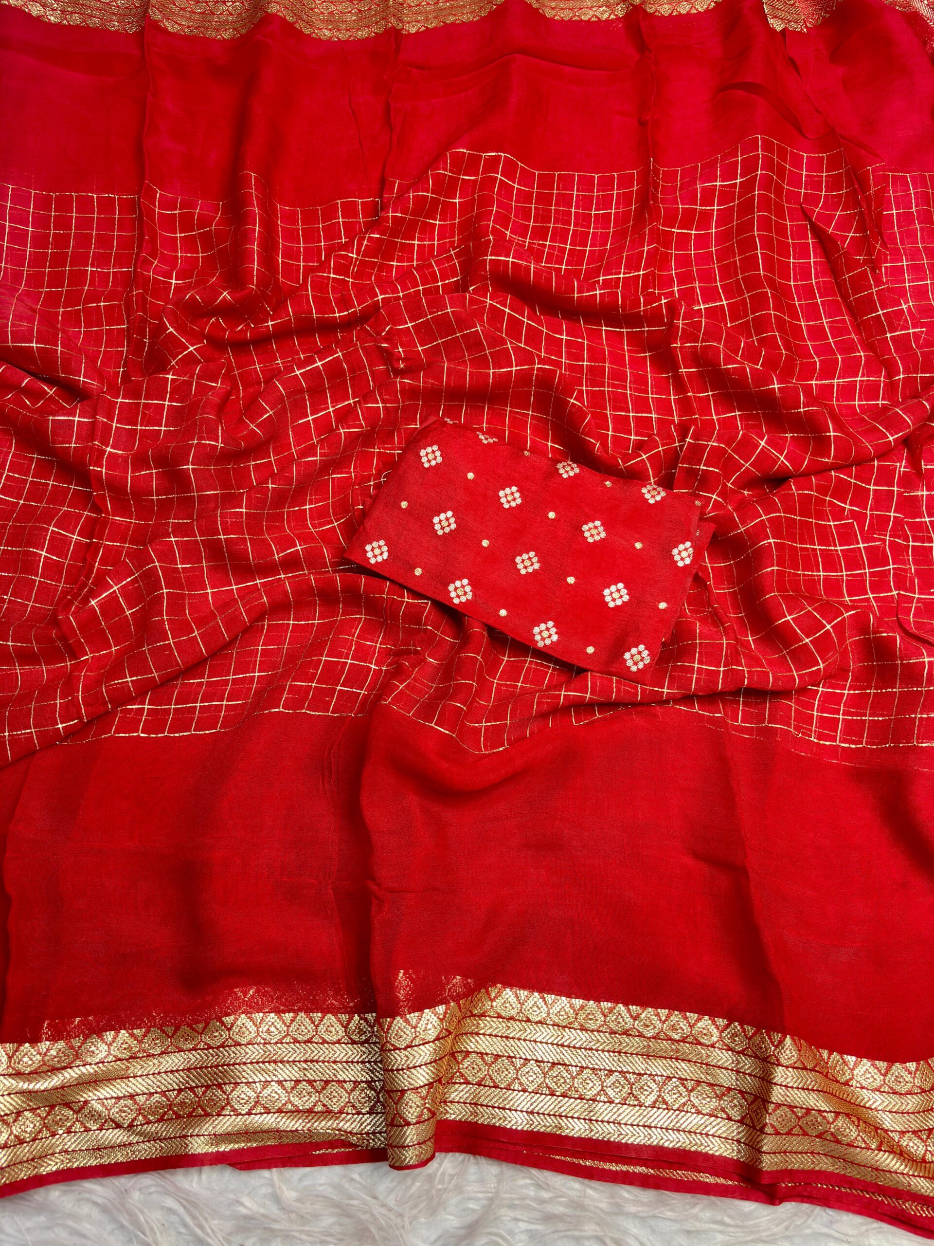 Viscos Georgette with middle Chex and beautiful border ,Viscos butti blouse